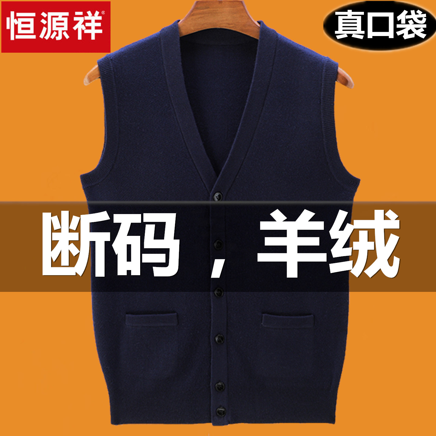 恒源祥羊绒马甲老年无袖背心男加厚保暖针织羊毛秋衣爸爸冬装开衫