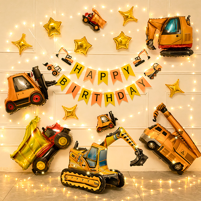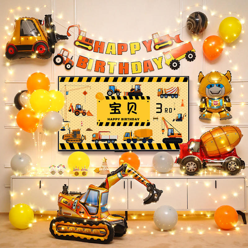 男孩2两3三周岁汽车气球宝宝儿童生日派对氛围装饰场景布置背景墙
