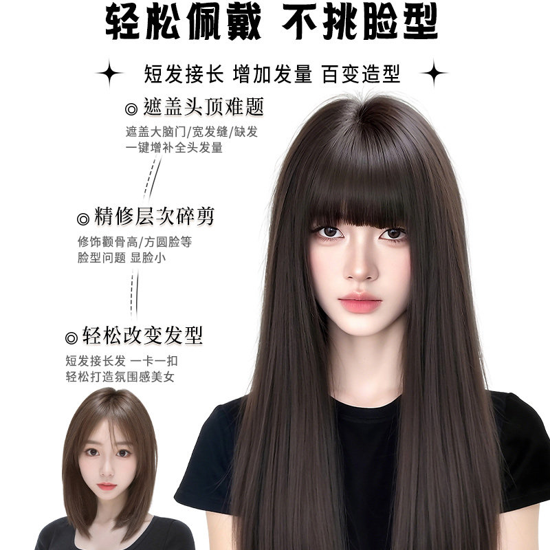 不用戴发网假发女片头顶增发量仿真发黑长直漫画齐刘海无痕补发片