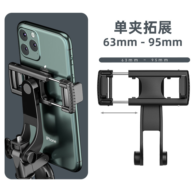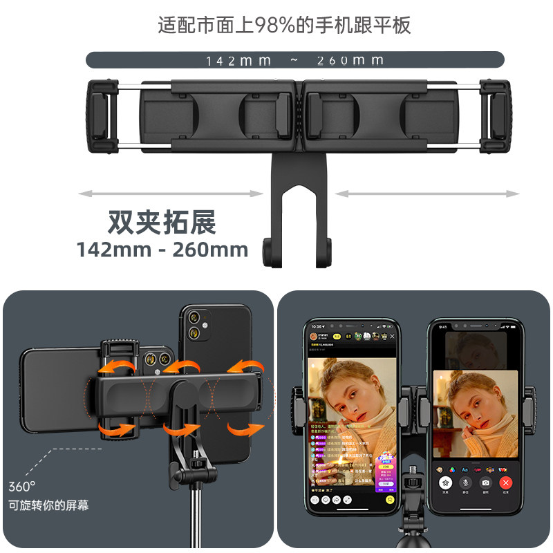 横竖旋转可调双手机平板夹三脚架直播支架手机通用自拍杆固定夹子360度旋转多角度双机位拓展夹横竖屏可调节