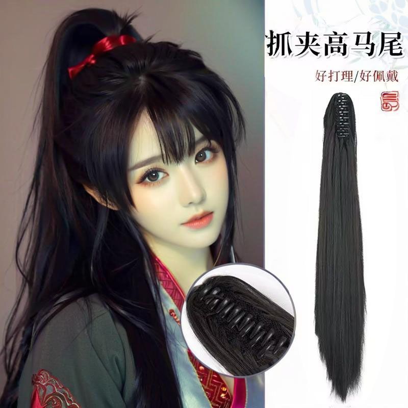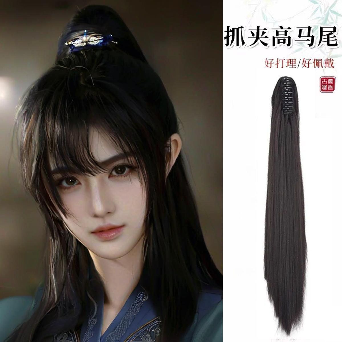 古装古风假发汉服假毛男抓夹式高马尾长直发自然逼真辫子cos头饰