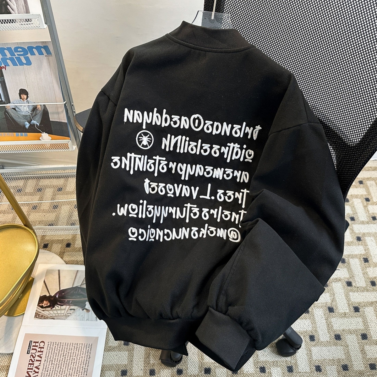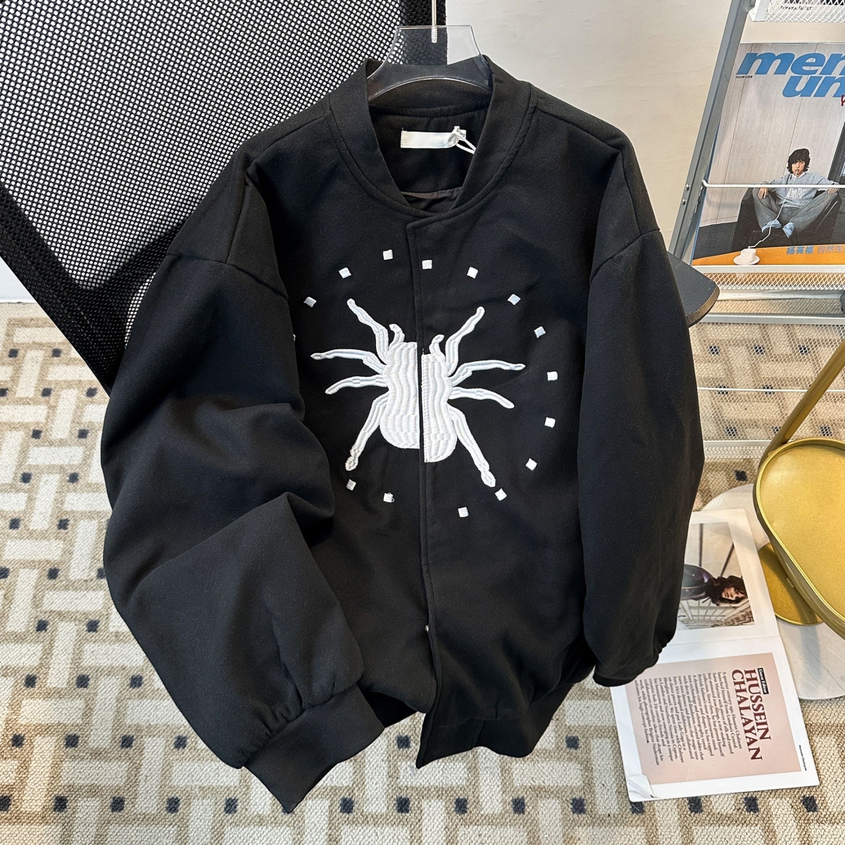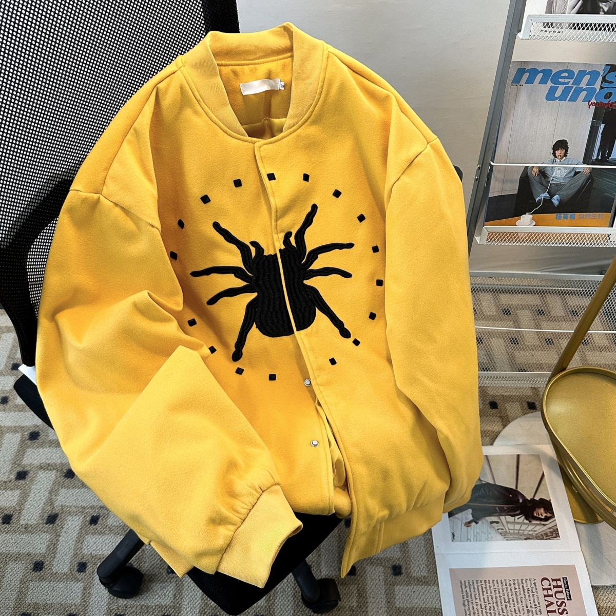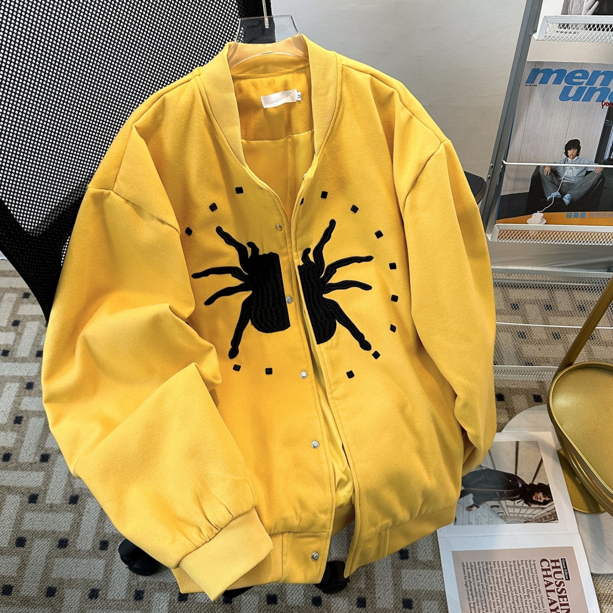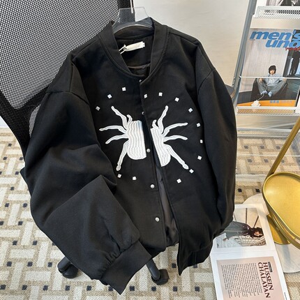 高街美式蜘蛛字母刺绣夹克外套男女情侣同款潮牌宽松休闲棒球服潮