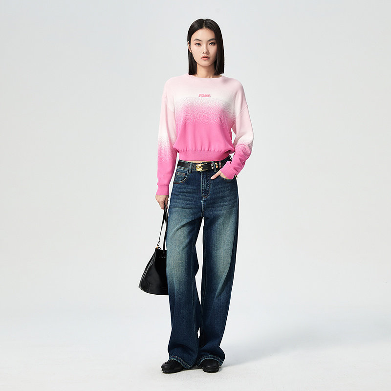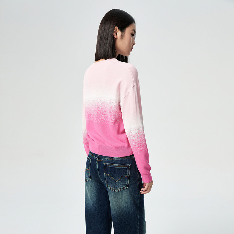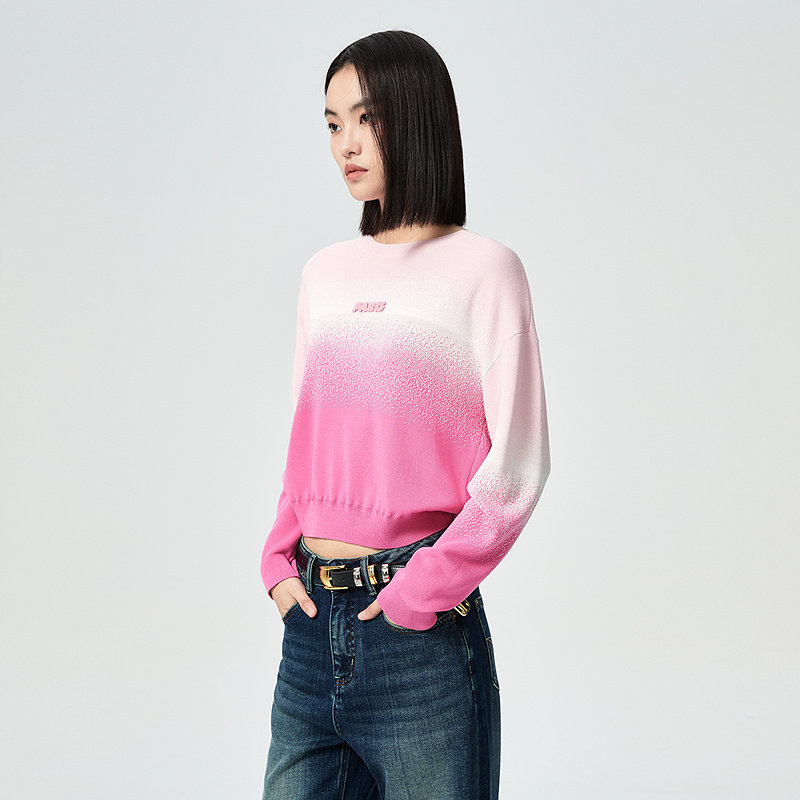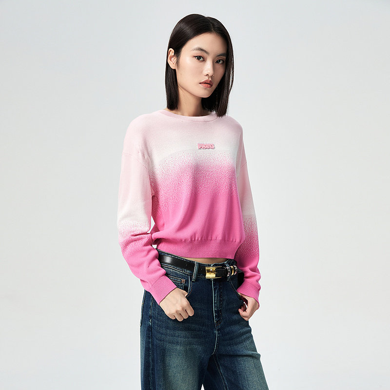 普普风专柜同款2026年春季甜美风圆领长袖针织衫渐变晕染套头毛衫