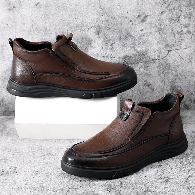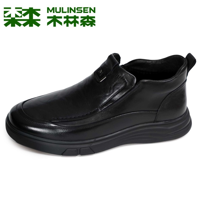 木林森男鞋2025冬季新款爸爸鞋男士真皮加绒保暖高帮棉鞋休闲皮鞋