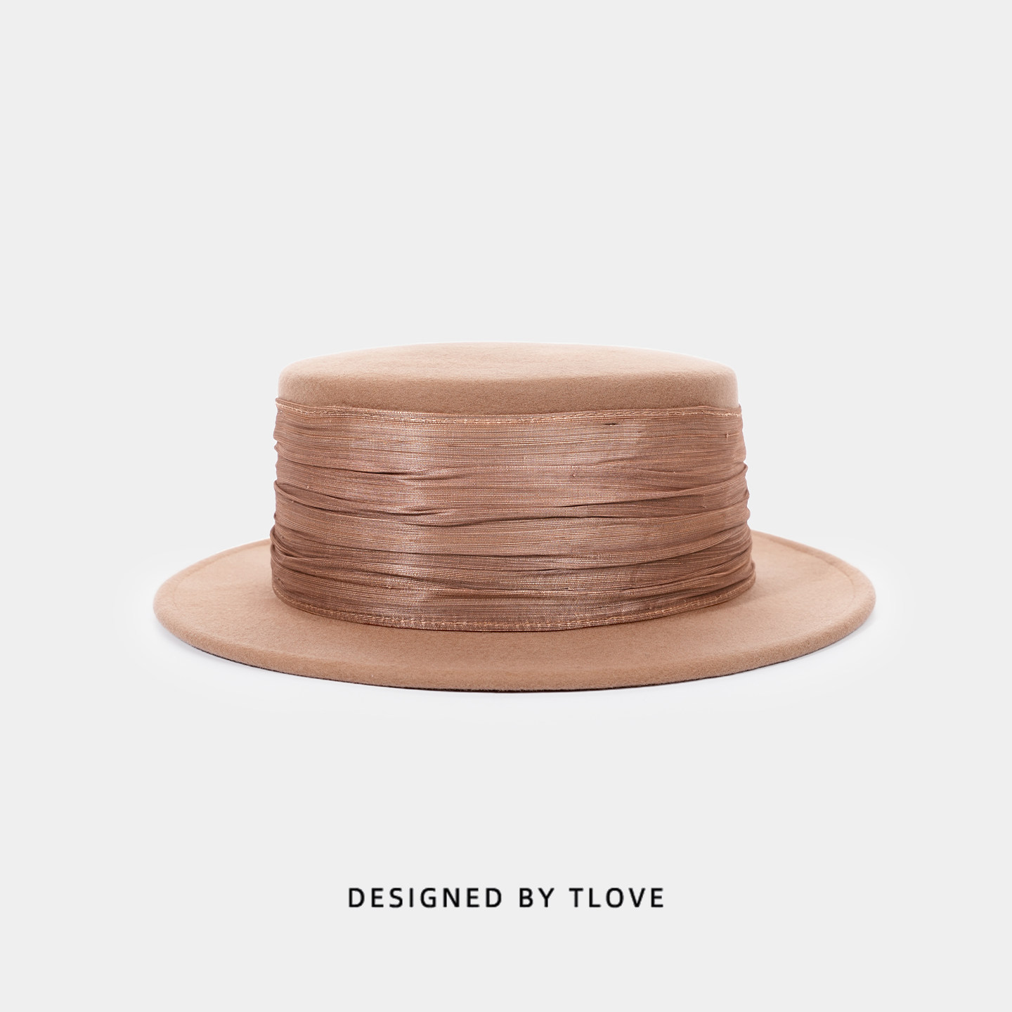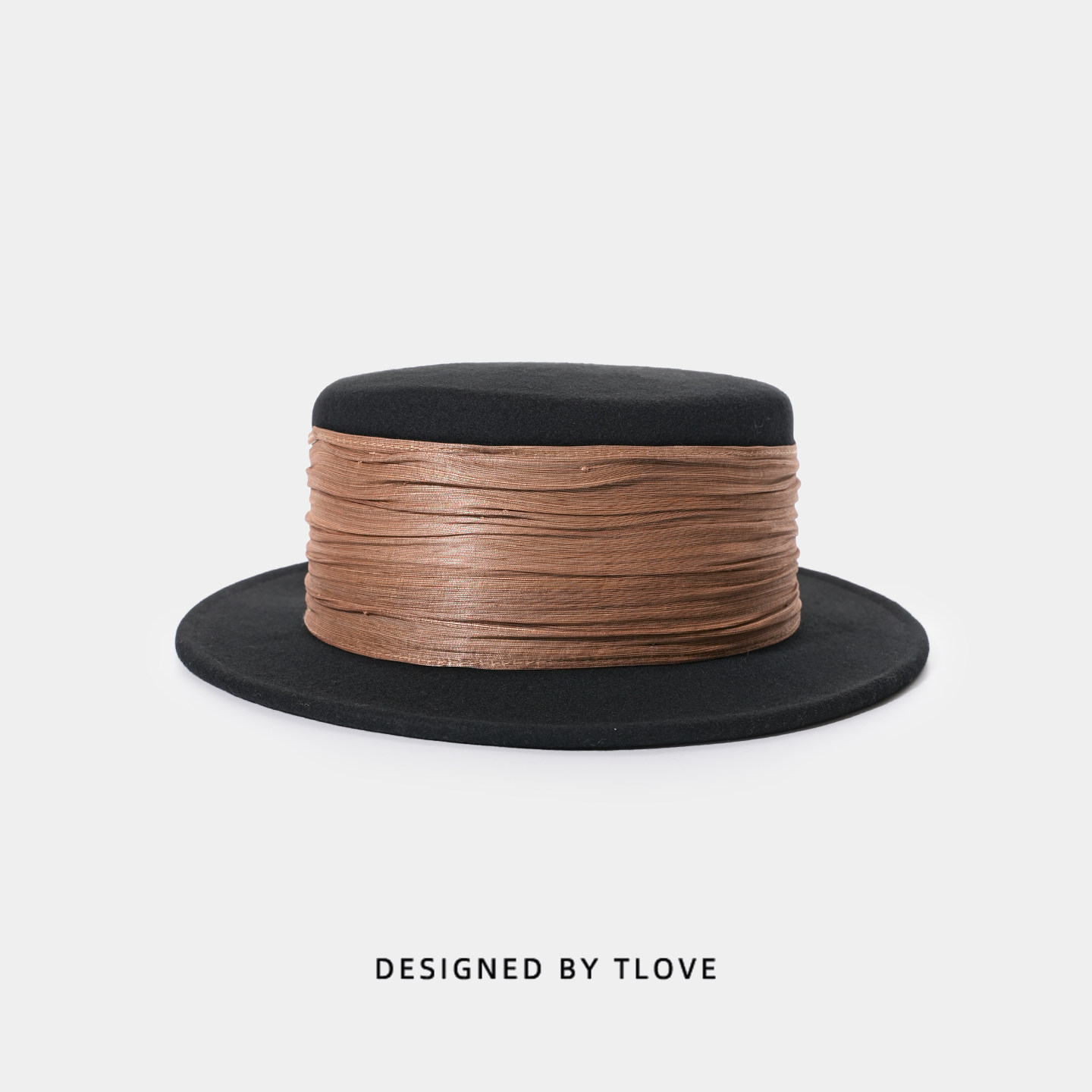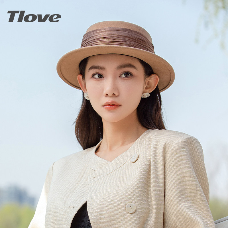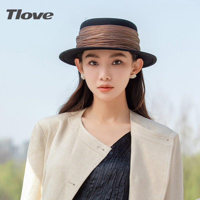 9437+时尚休闲平沿帽洋气百搭羊毛毡帽子女士秋冬季新款平檐礼帽