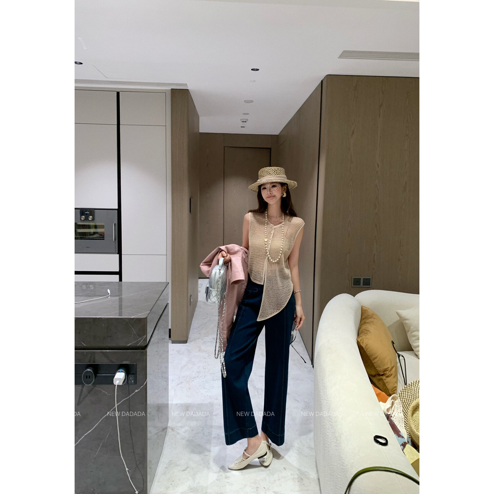 利达NEW DADADA【茶色】复古做旧蓝色牛仔裤女高腰显瘦小脚直筒裤
