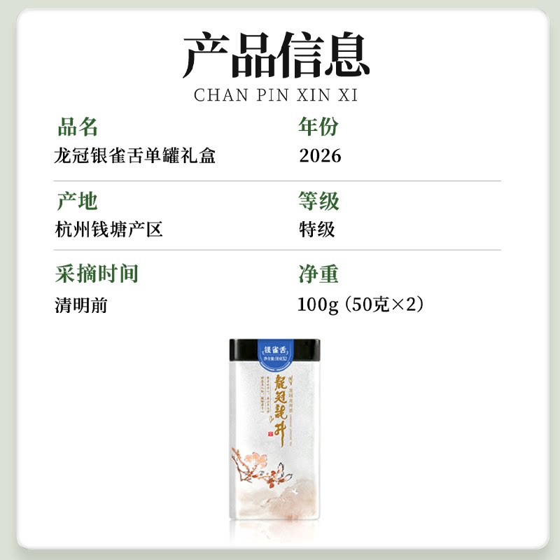 2026新茶预售 龙冠龙井茶明前特级银雀舌单罐100g杭州绿茶叶正品