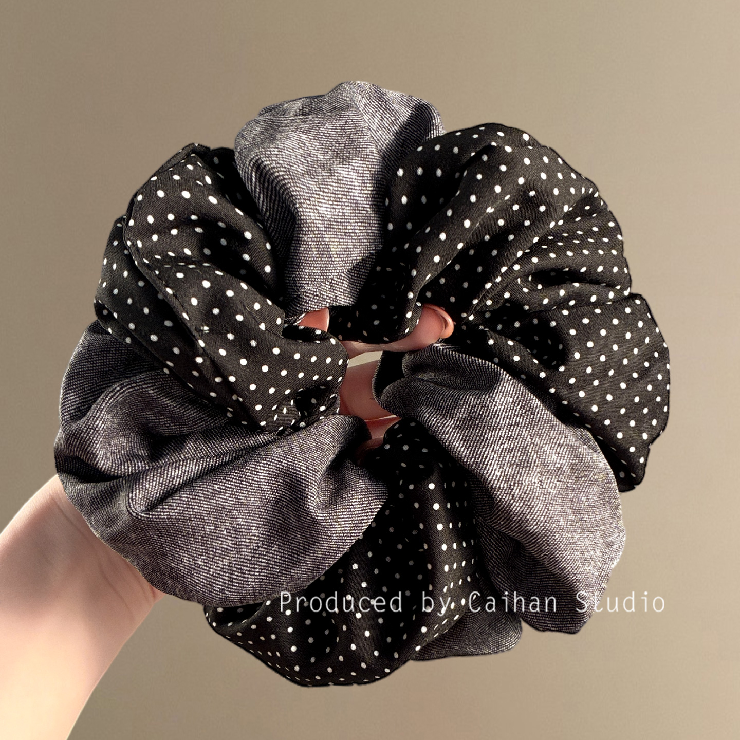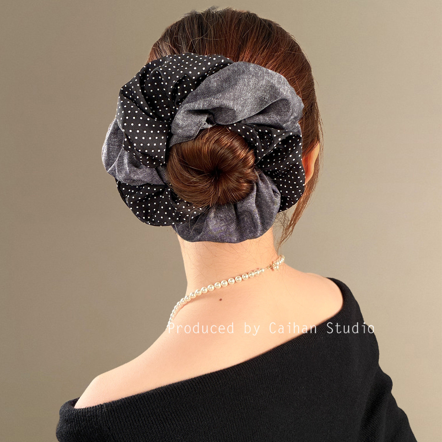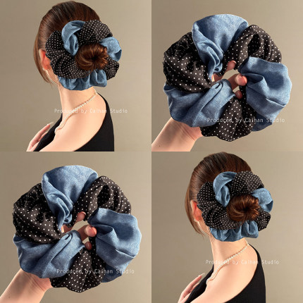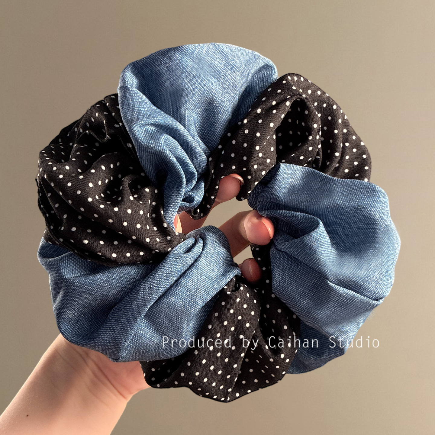 邮票漫记~韩系拼色波点大肠发圈气质牛仔蓝发绳女2025新款发饰女