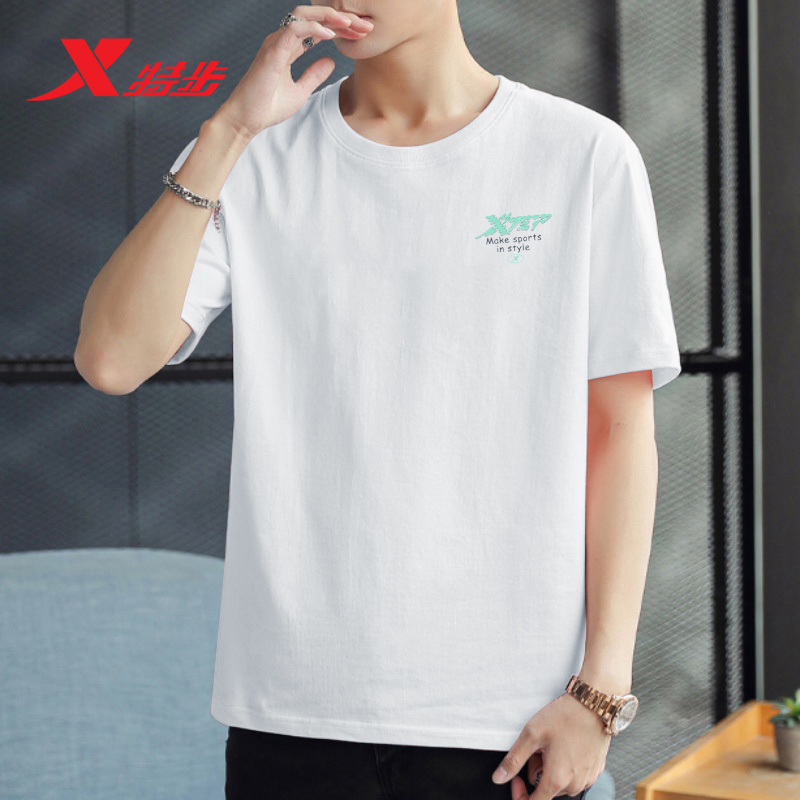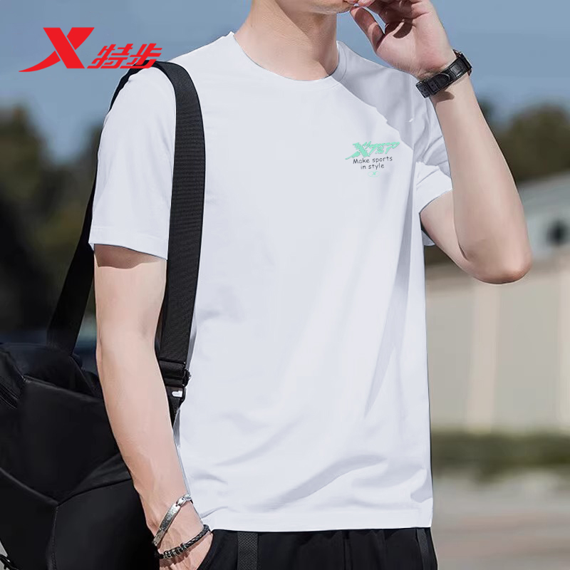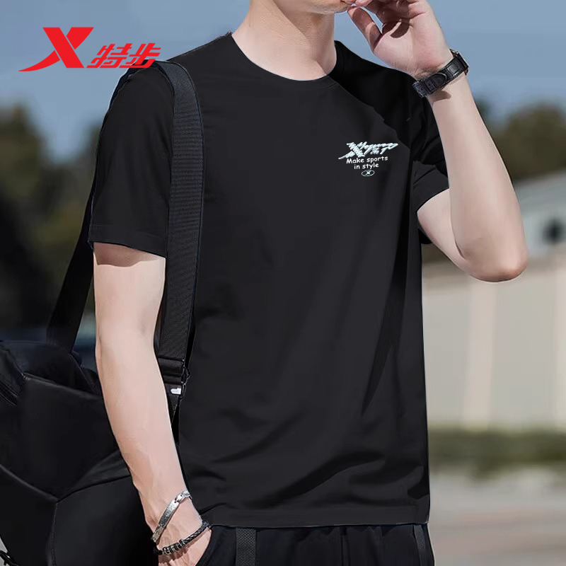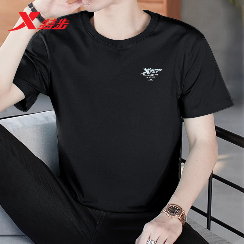特步纯棉短袖T恤男2025新款夏季透气圆领半袖宽松男士运动服上衣
