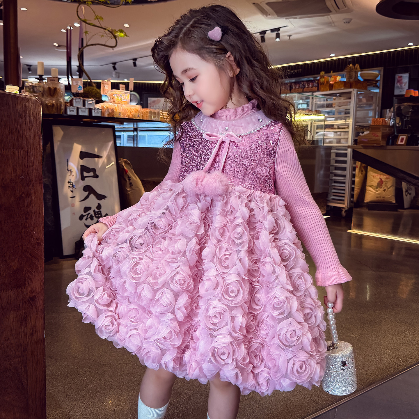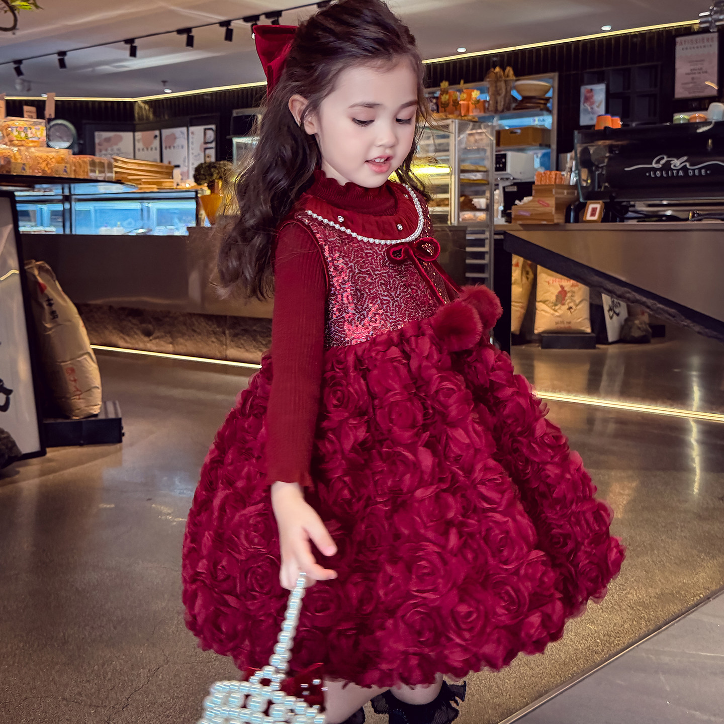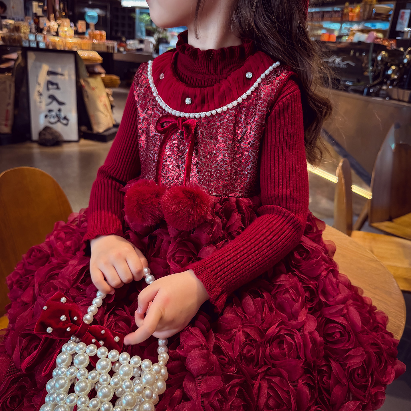 女童加绒连衣裙冬装2025新款法式小女孩花苞公主裙儿童礼服蓬蓬裙