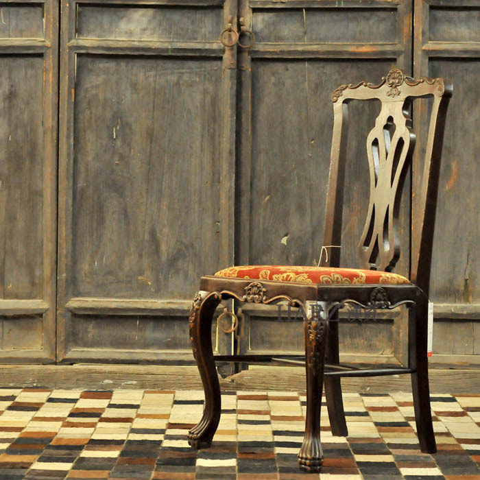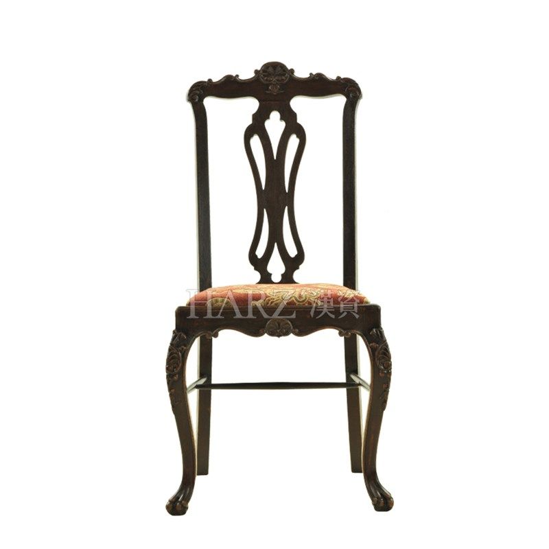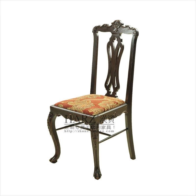 欧式复古实木餐桌椅 布艺餐椅美式雕花复古椅咖啡厅休闲椅书椅子
