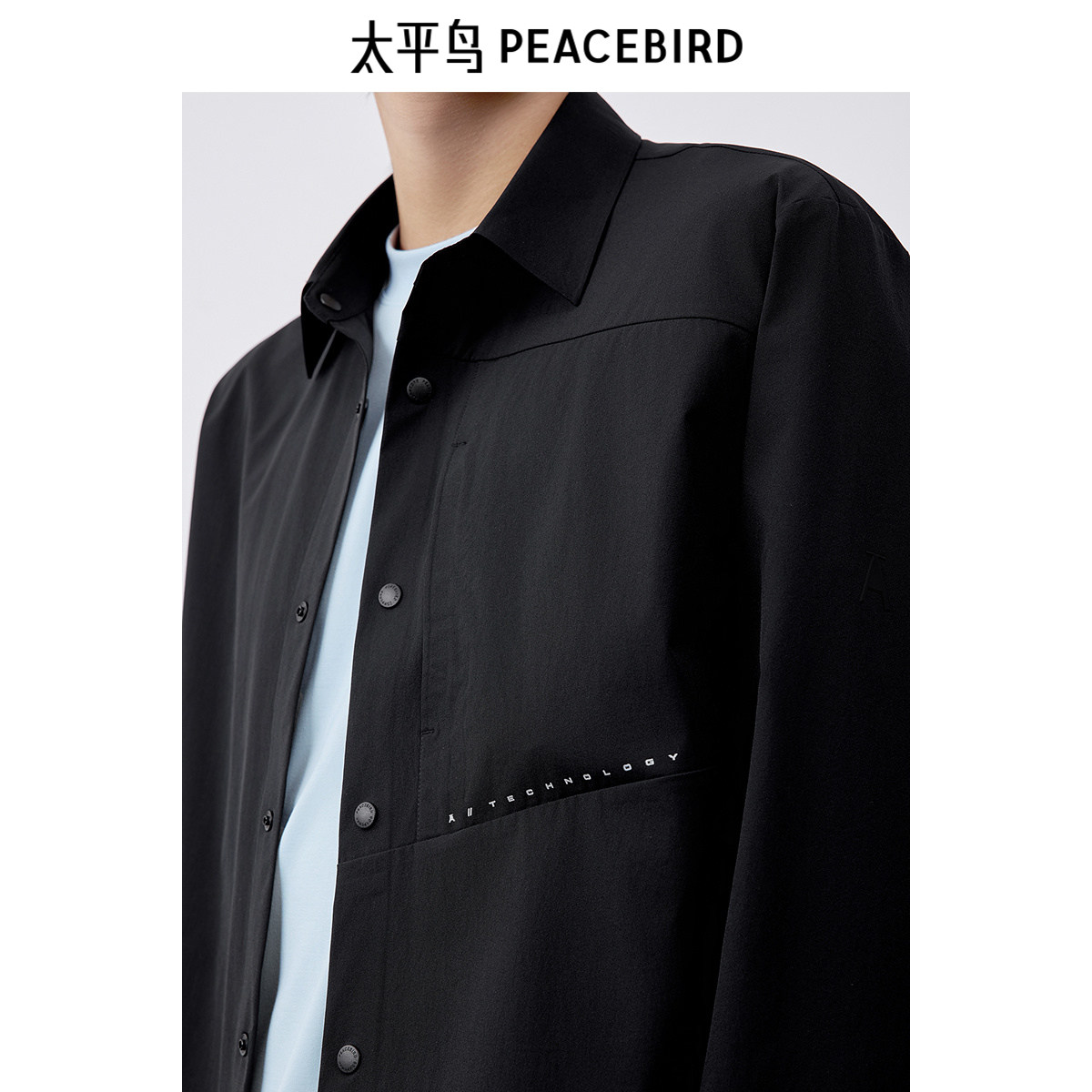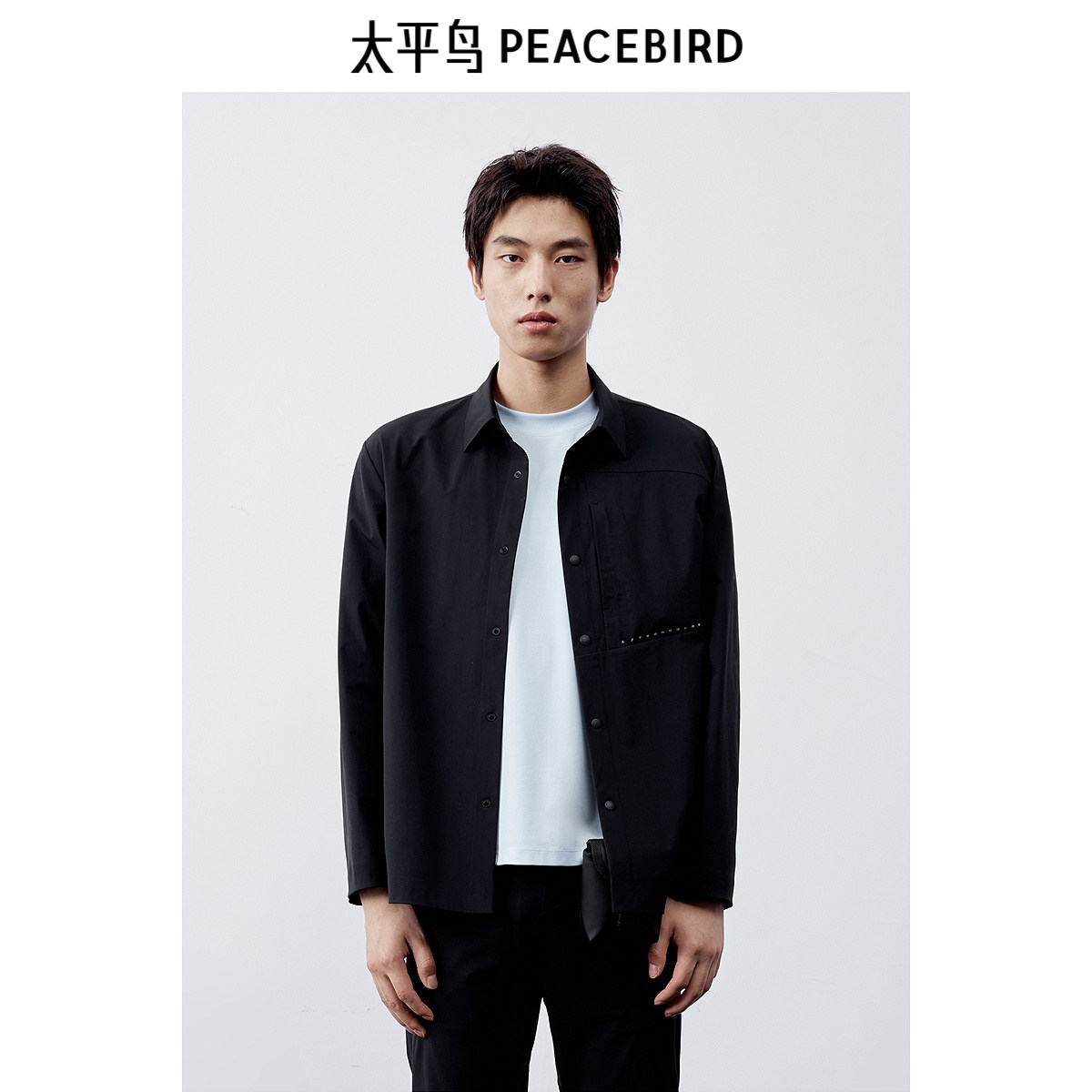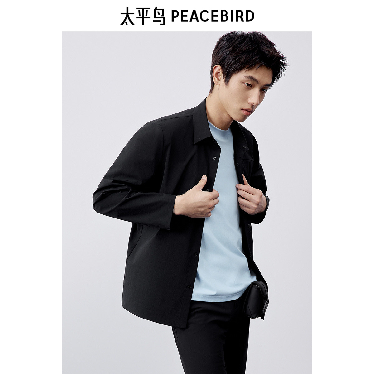 太平鸟男装 休闲衬衫2025夏季新款翻领百搭合体弹力衬衫男士衬衣