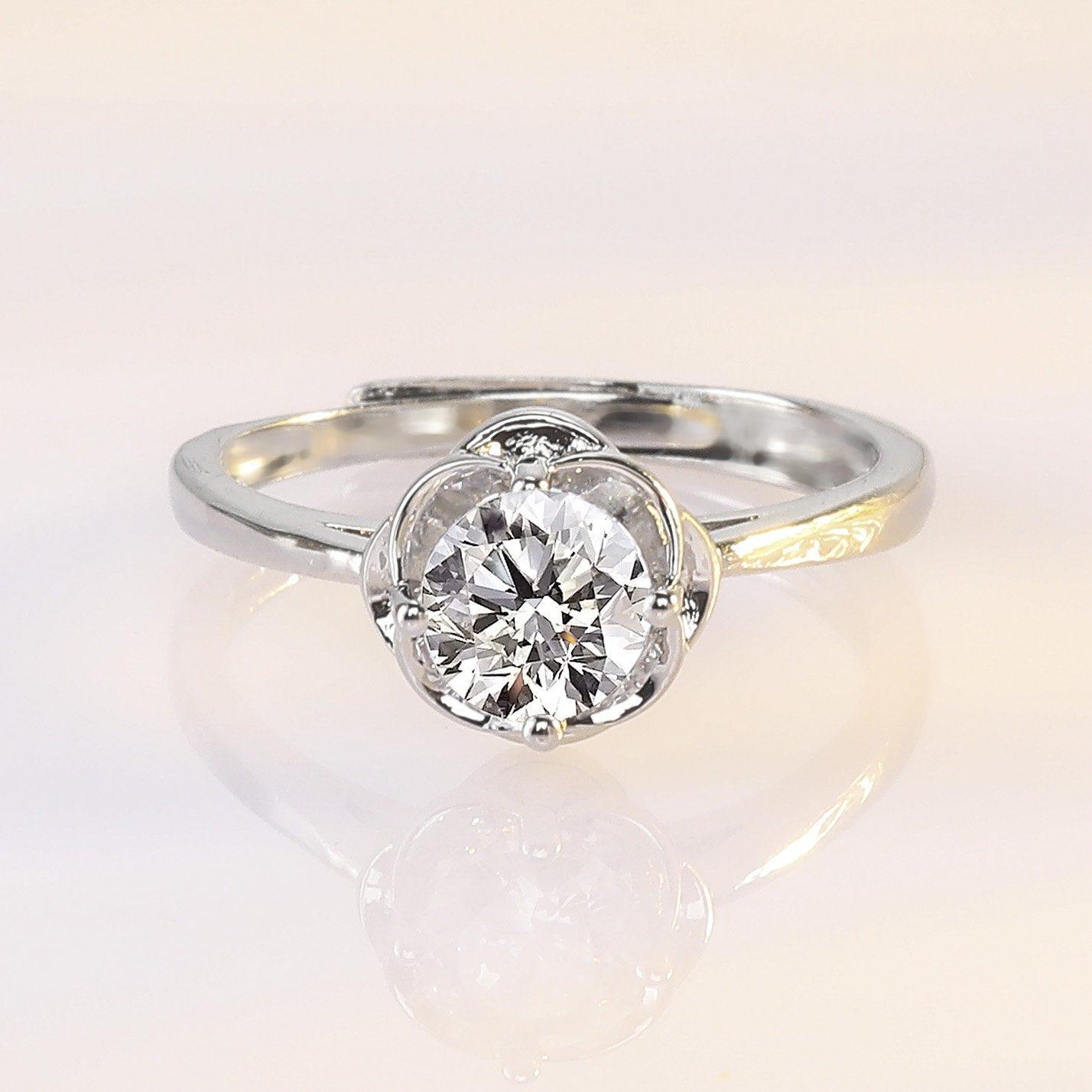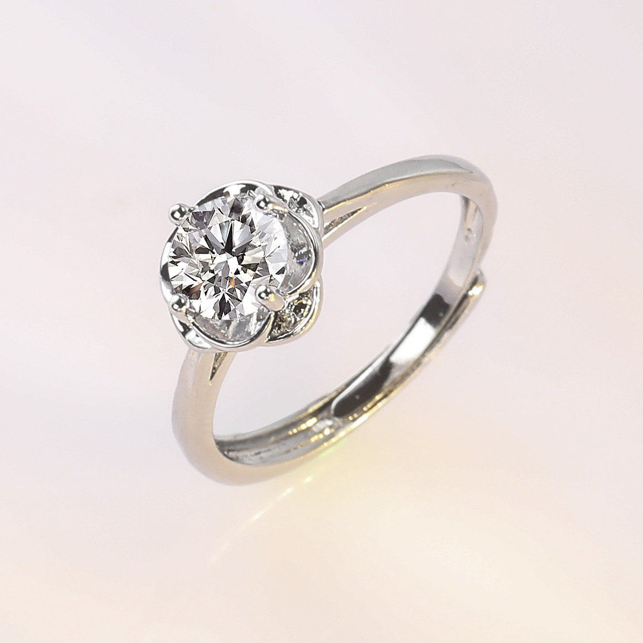 欧美时尚几何形硞石镶钻戒指少女简约甜美小清新求婚订婚结婚钻戒