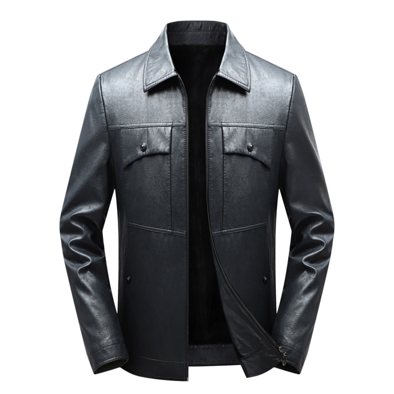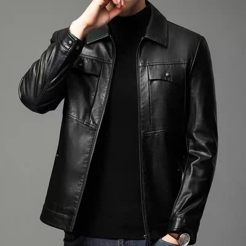 海宁皮尔卡丹真皮衣男式加绒绵羊皮软皮夹克修身加厚翻领薄款外套