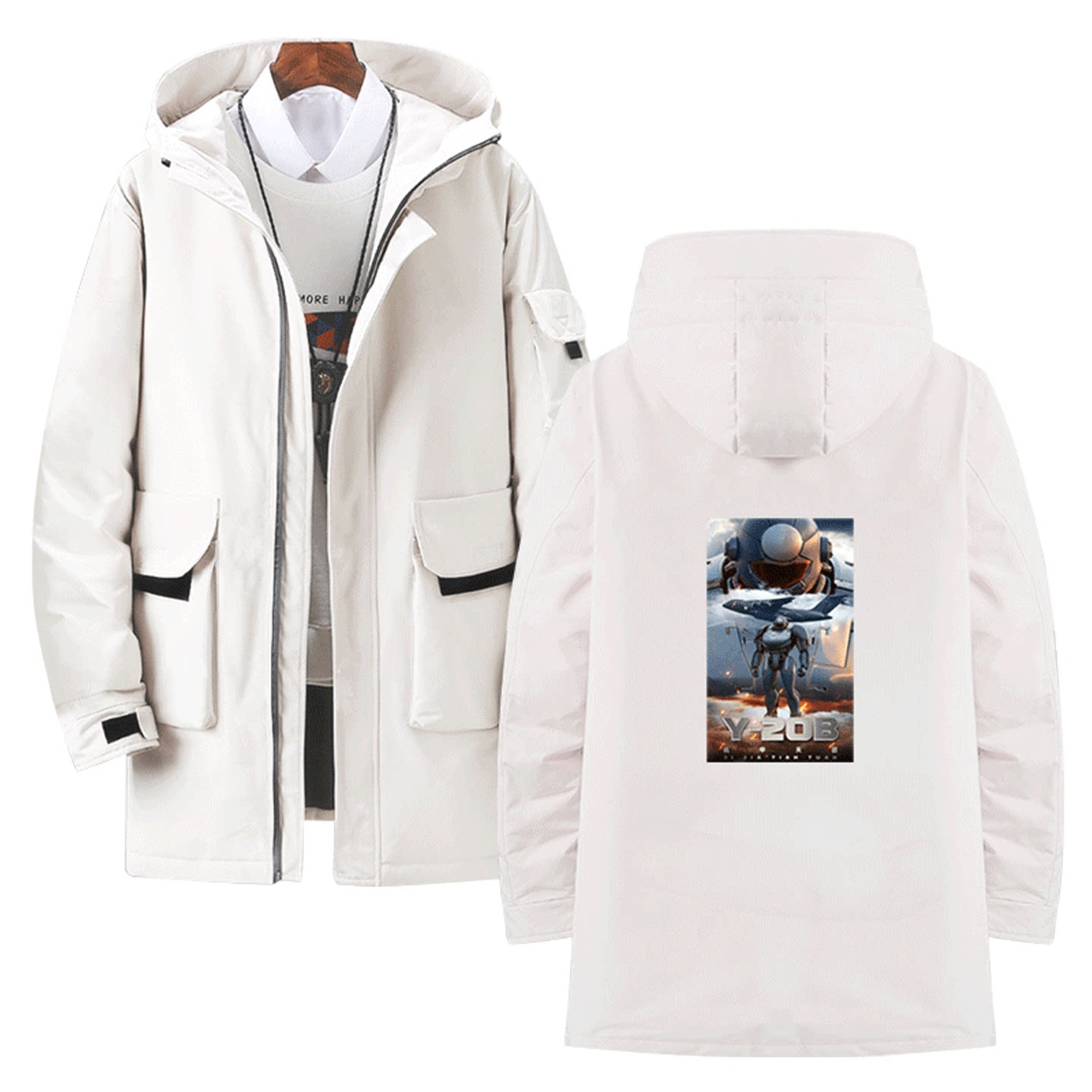 国潮动漫机甲纪元Y-20B变形战术机甲鲲鹏男女可定制中长款羽绒服