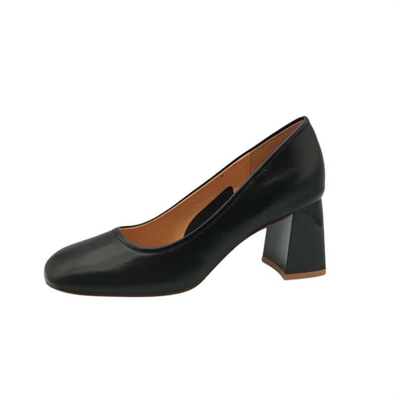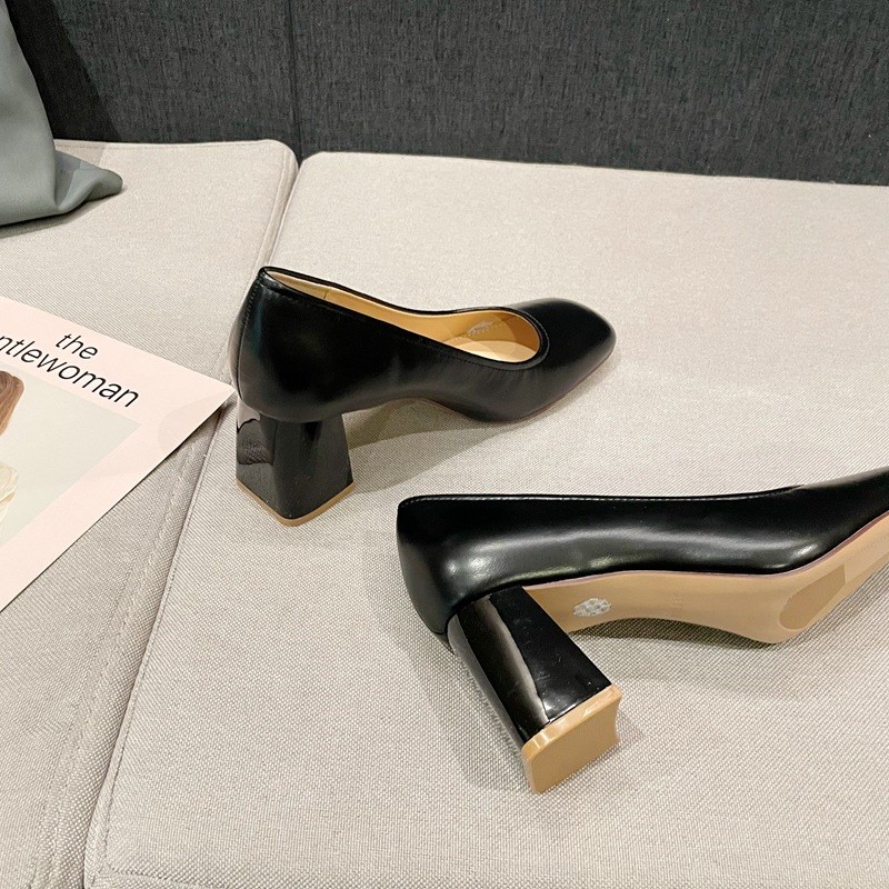 百搭时尚女鞋10-3n0浅口单鞋中跟粗跟高跟鞋女2023春新款软皮方头