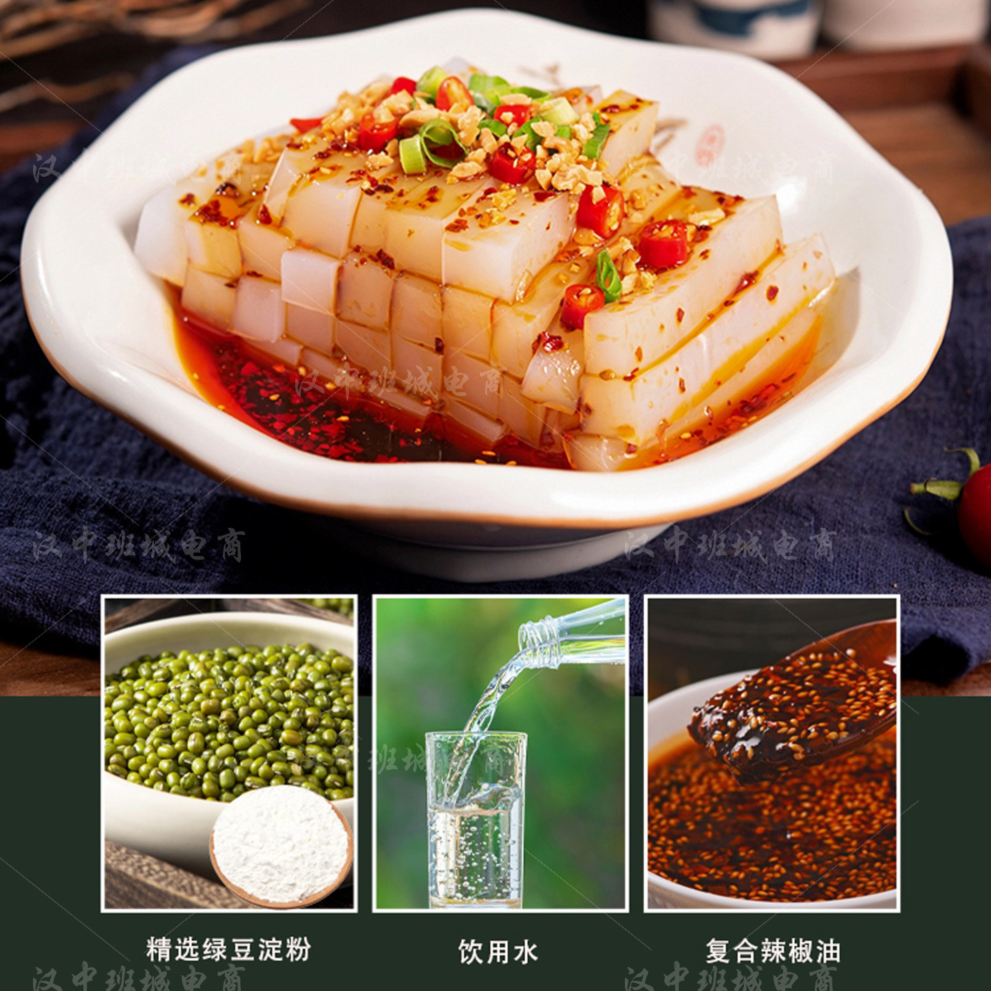 绿豆凉粉白凉粉汉中特产小吃即食凉粉香辣凉粉开袋即食