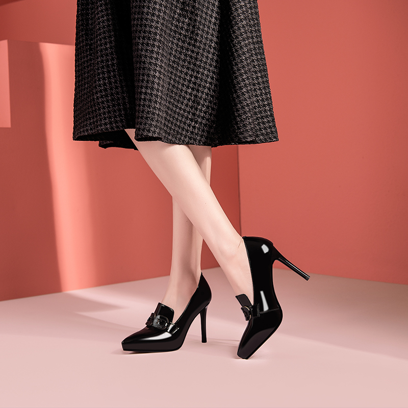 复古气质单鞋女2025秋季新款设计感小众黑色百搭真皮细跟高跟鞋