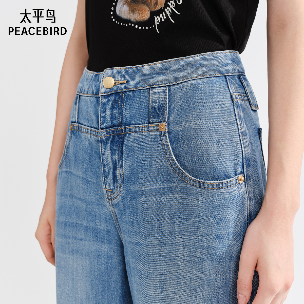 太平鸟女装年秋季款天丝直筒牛仔裤A1HAE3115