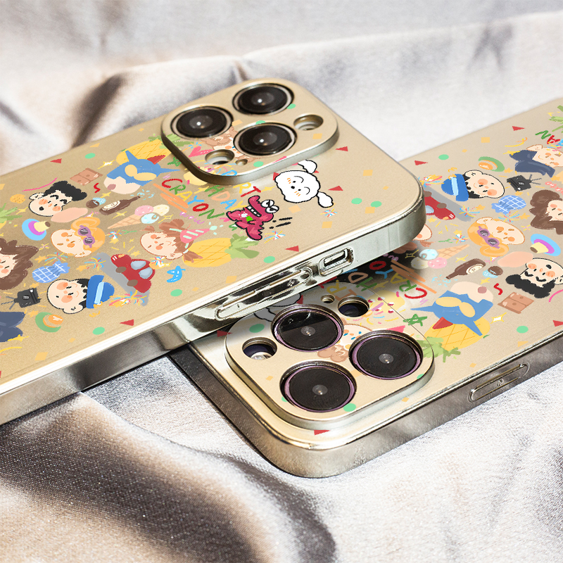 蜡笔新之助适用苹果16保护套14plus电镀银iPhone15手机壳xs11全包xr情侣6s高级7g8新款12mini女se2软13promax
