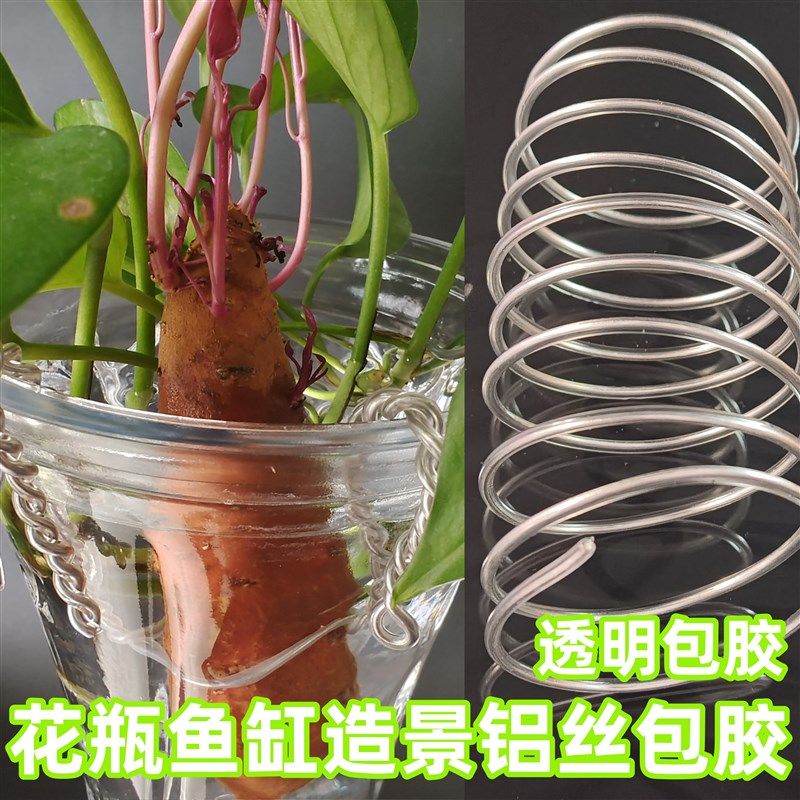 不生锈包胶铝丝鱼缸n园艺花草造景固定水培吊兰地瓜定型条软铁丝