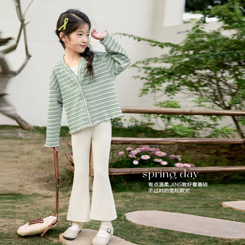 陈大猪女童V领针织开衫2025秋装新款纯色百搭儿童休闲长袖外套