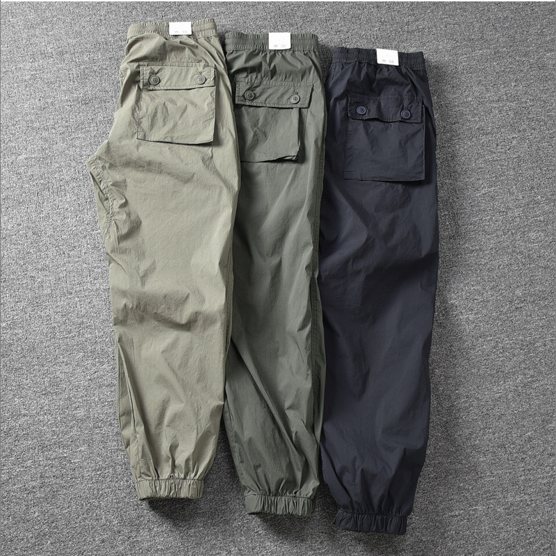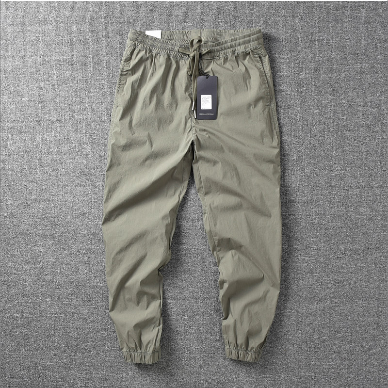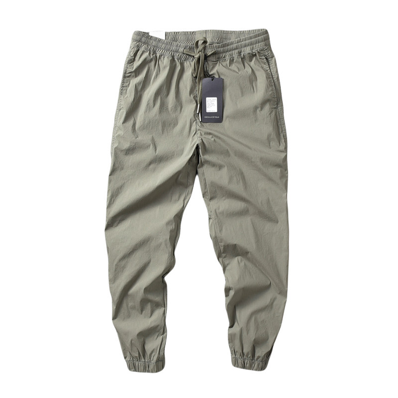 夏季轻薄裤 日系复古自然水洗纯棉男士休闲9分裤速干弹力束脚裤潮