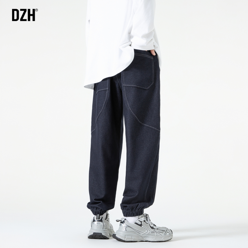 男士蓝色束脚牛仔裤男秋季美式老爹裤百搭休闲长裤子2025新款男裤