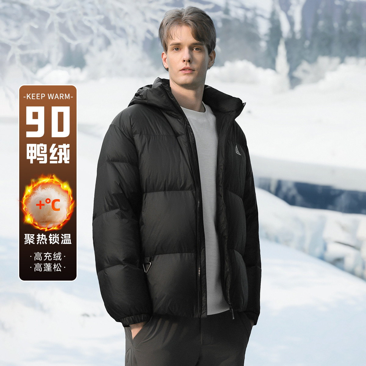 罗蒙冬新款90鸭绒羽绒服男高充绒加厚连帽面包服拉链口袋短款外套