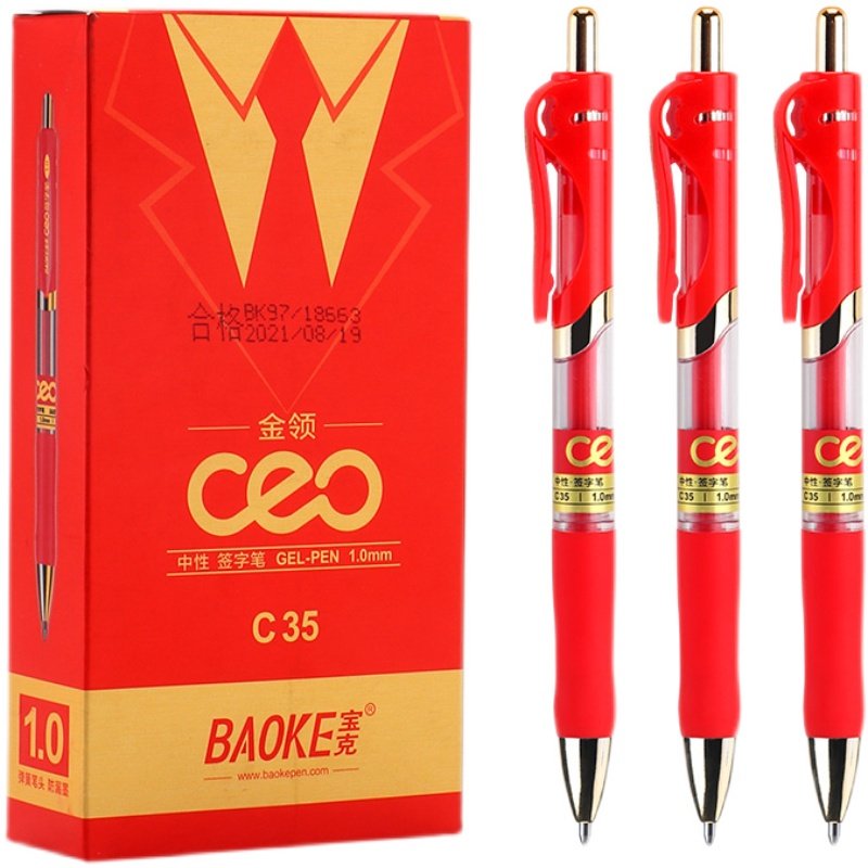 宝克C35按动中性笔黑色1.0mm红色水笔子弹头按压办公签字笔12支装