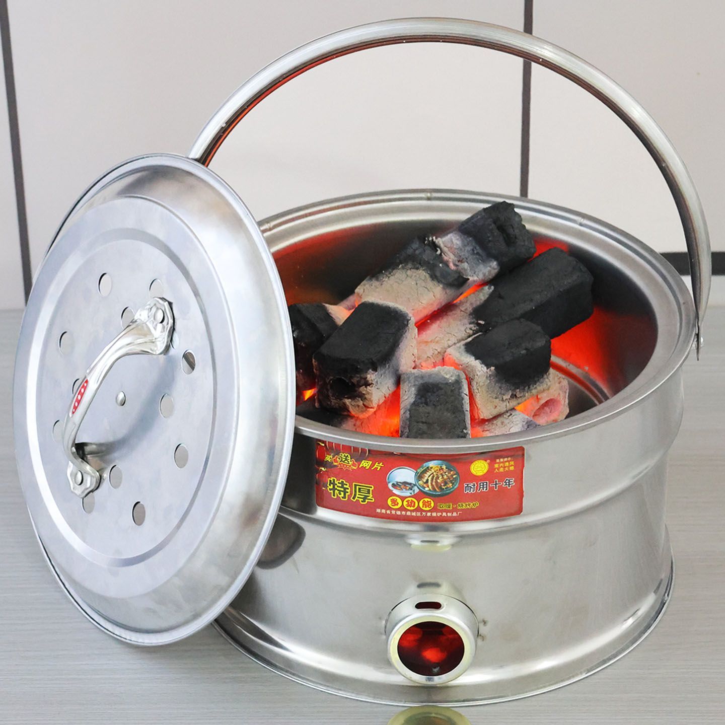 加厚木炭不锈钢取暖炉烤火盆加厚火炉家用便携式户外烧烤炉碳盆