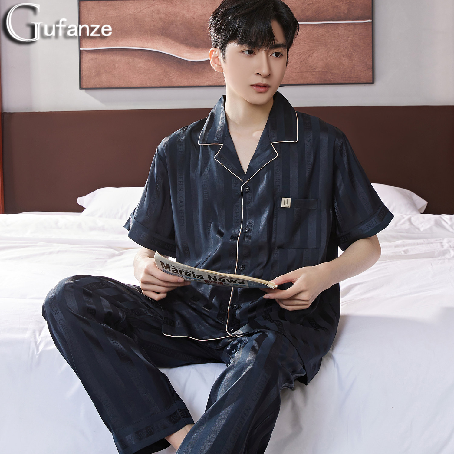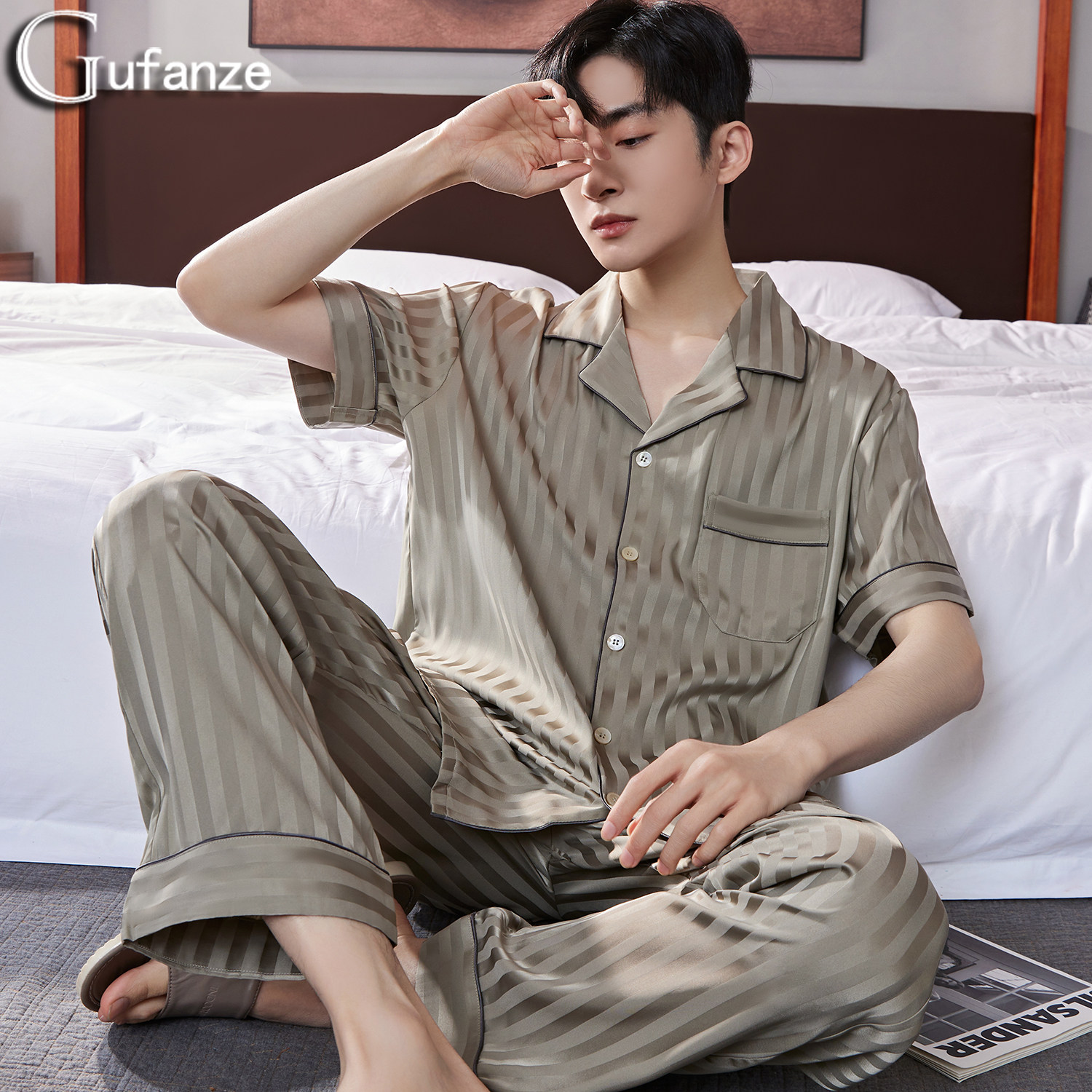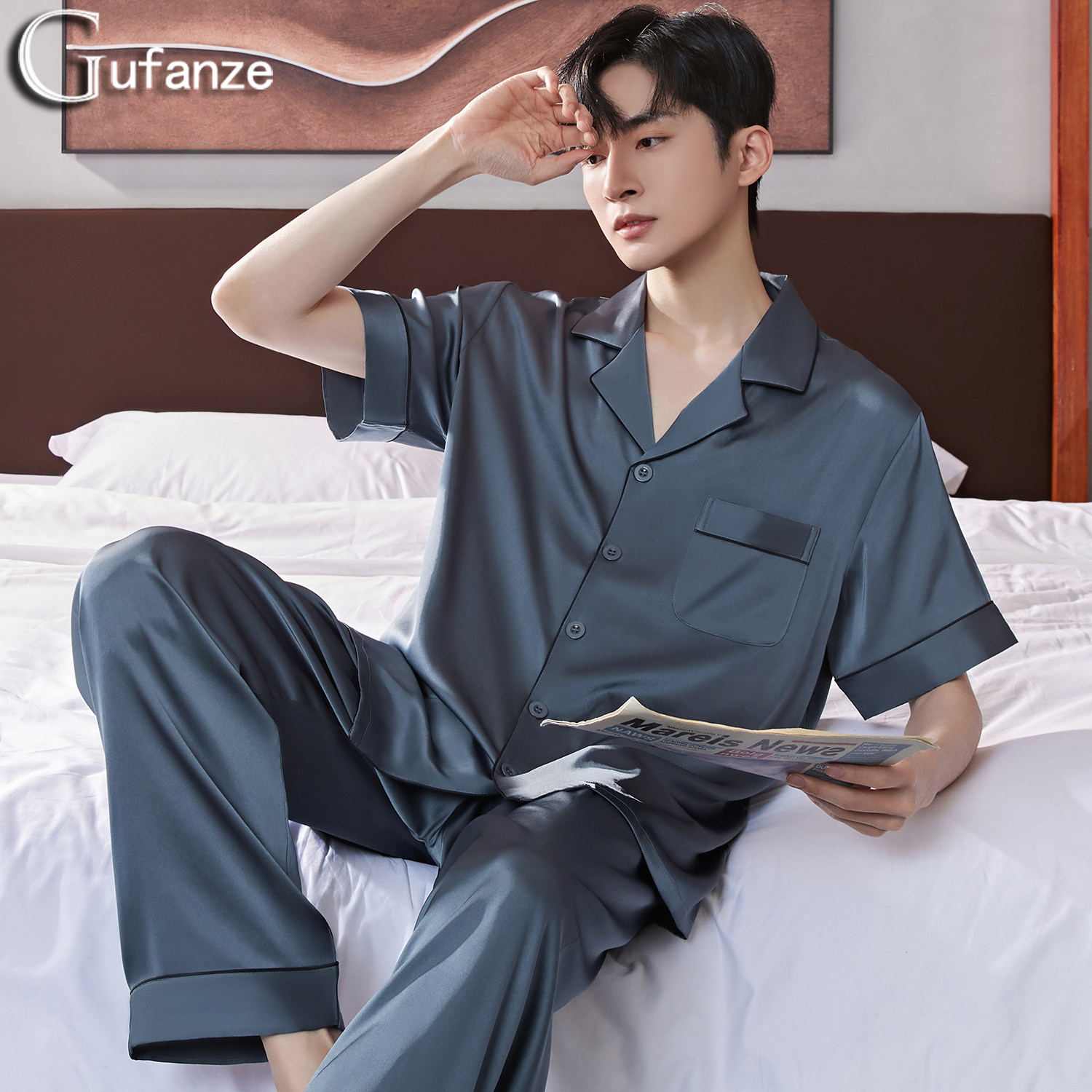 男士睡衣夏季冰丝短袖长裤男款春秋款家居服薄款夏天丝绸2026新款