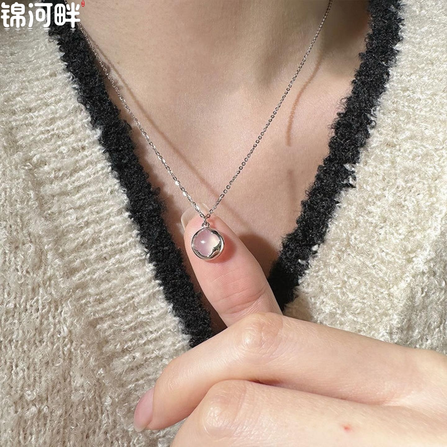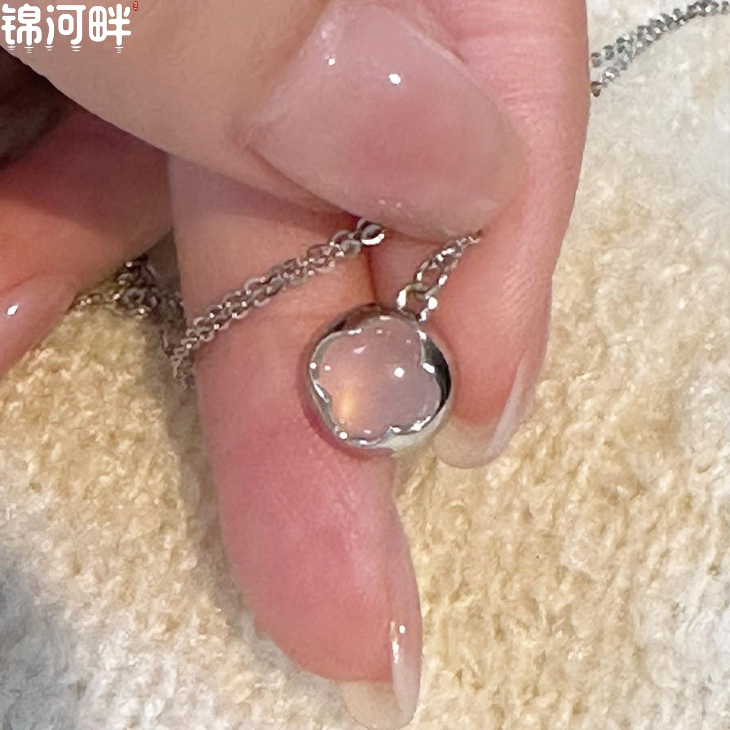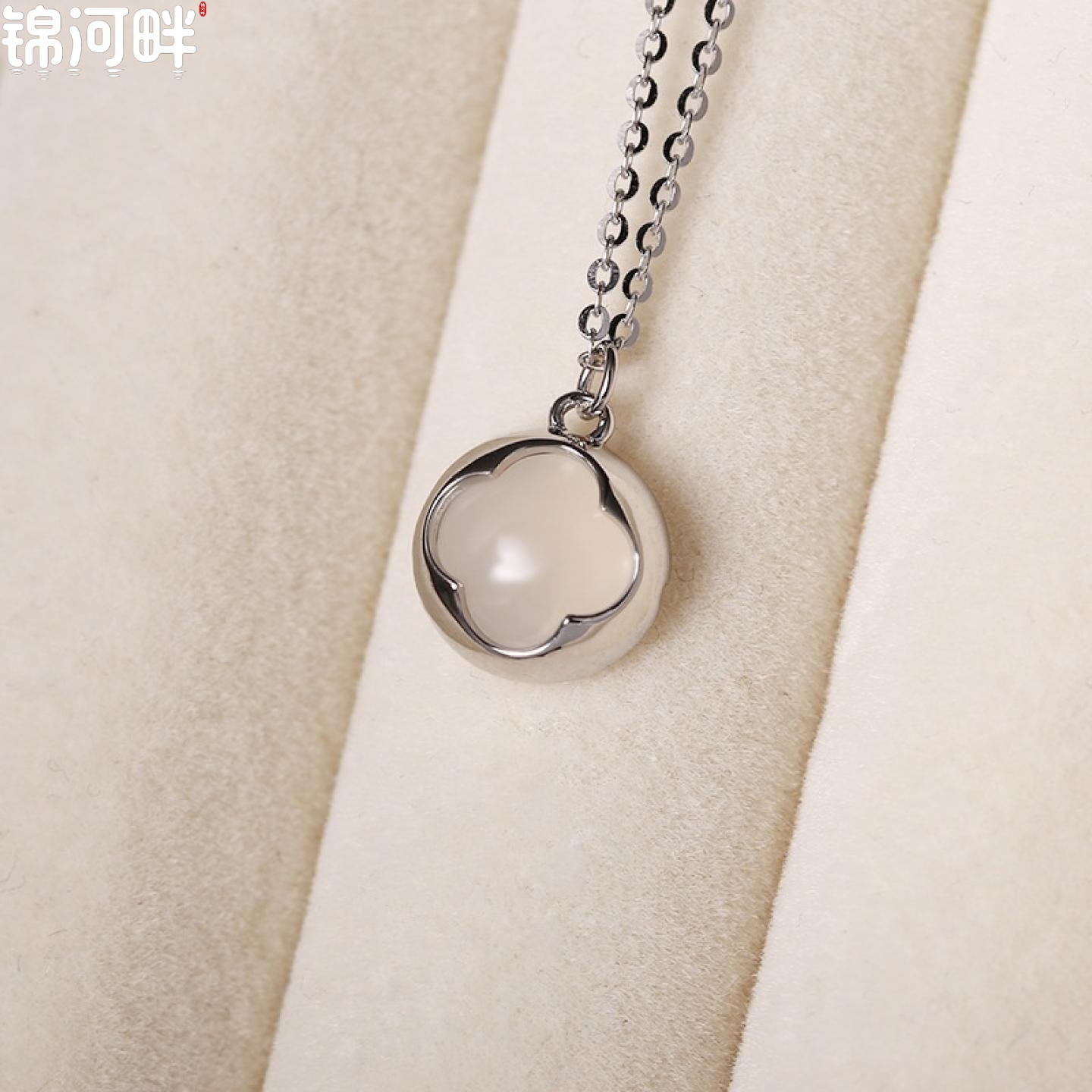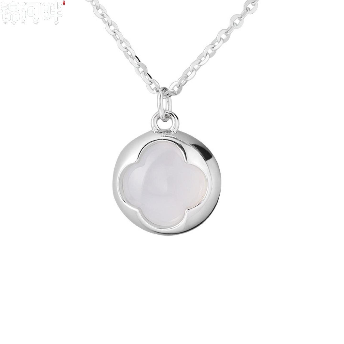 锦河畔 925纯银项链女白玉髓锁骨链简约气质四叶草造型天然石
