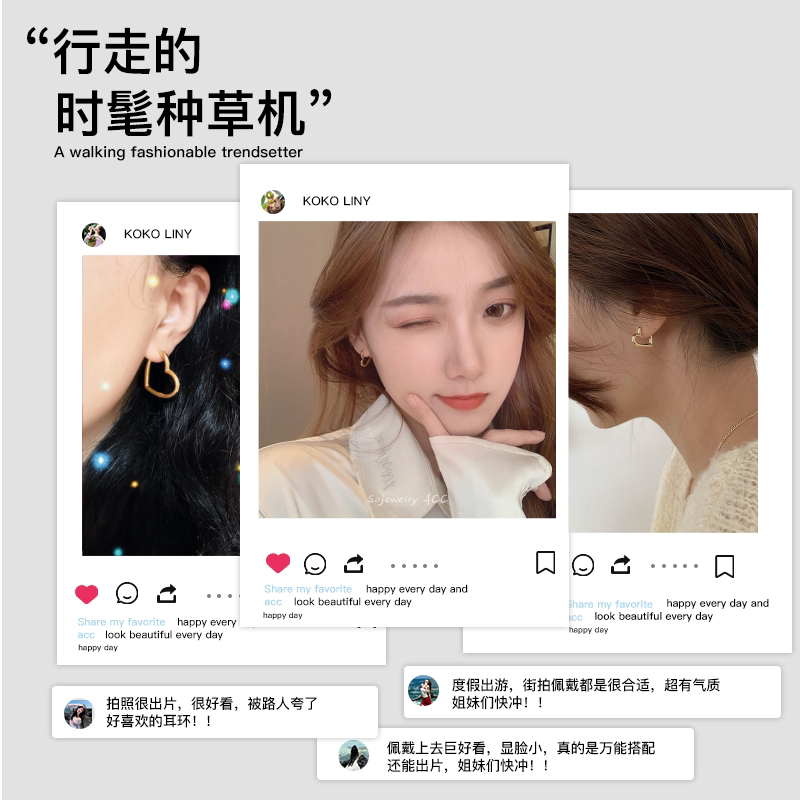 爆闪18k金爱心耳扣耳饰女款轻奢