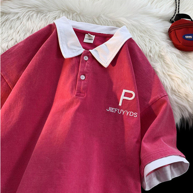 【精品】满68包邮◆2025夏季男假两件蜡染撞色刺绣POLO衫水洗T恤