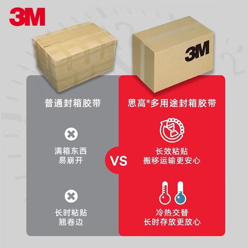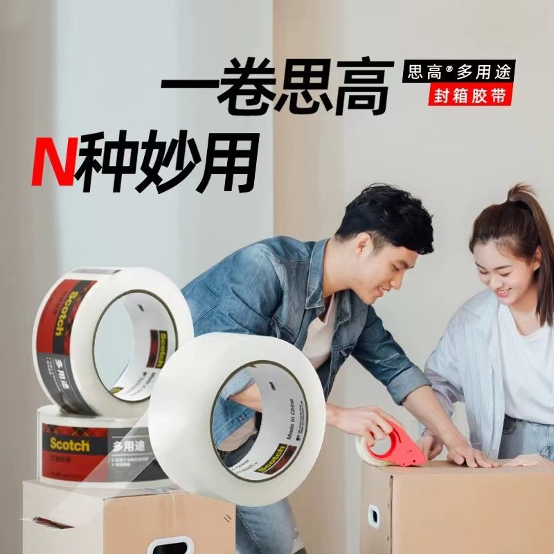 3M思高透明封箱胶带Scotch多功能高粘度大号加宽48mm超市封口快递打包固定胶布单面大卷超大打包家用胶纸
