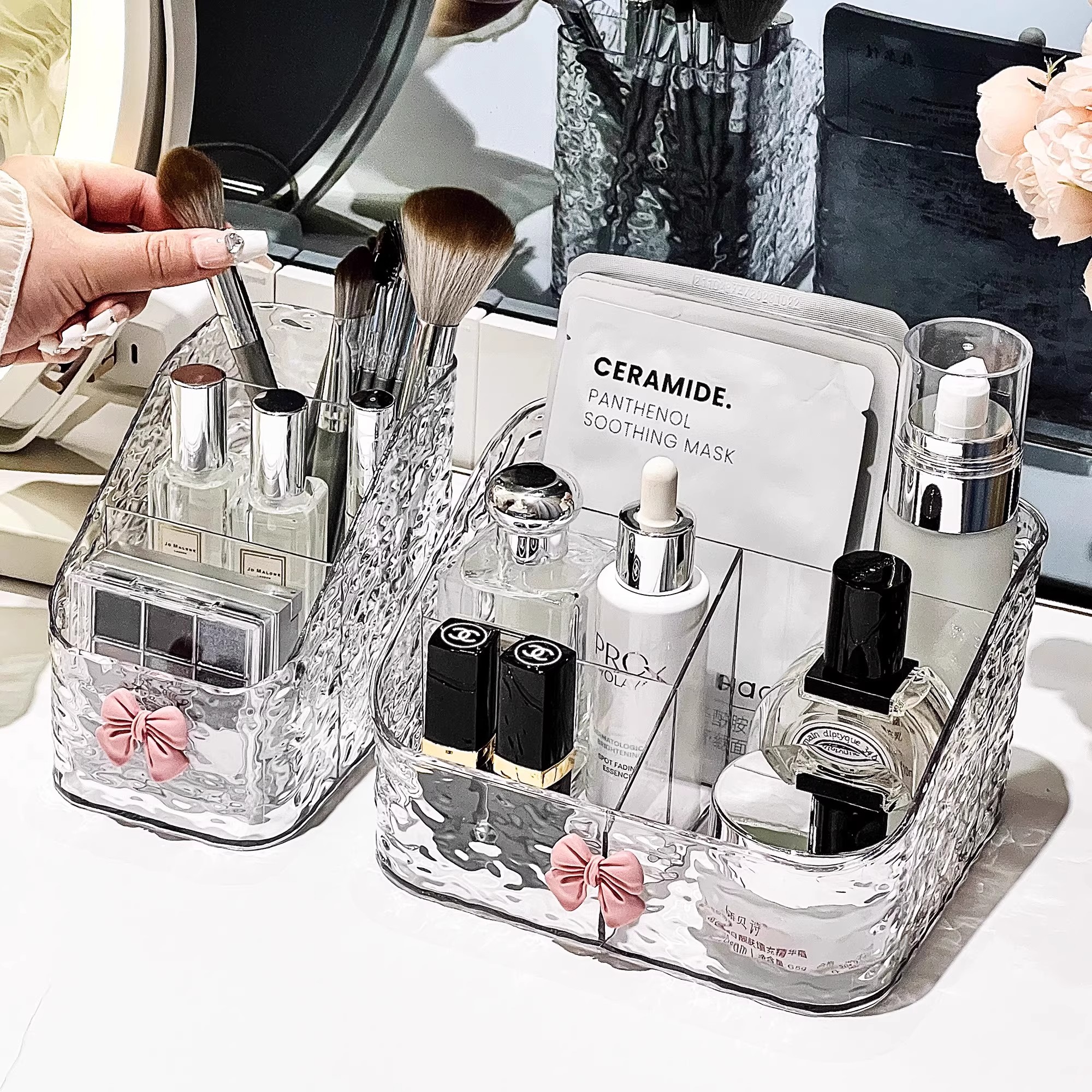 化妆品收纳盒口红护肤品轻奢水波纹亚克力化妆刷杂物大容量置物架