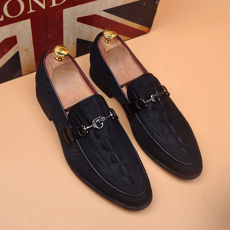 夏日透气青年潮流男士尖头休闲皮鞋套脚韩版内增高流行皮鞋豆豆鞋