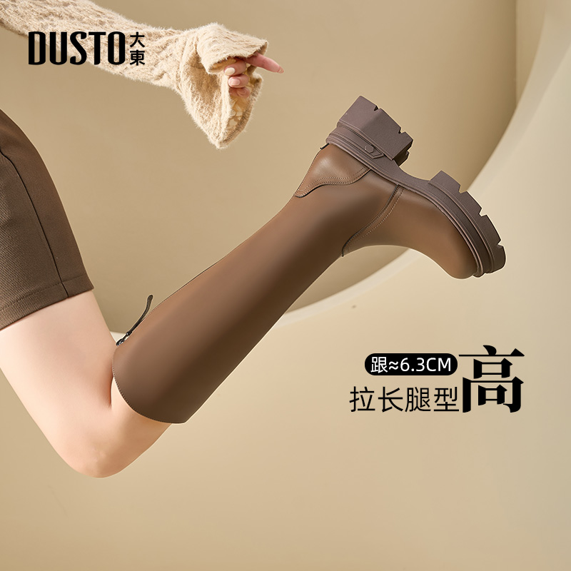 大东骑士靴女鞋2025冬季新款时尚休闲粗跟高跟后拉链圆头D0125