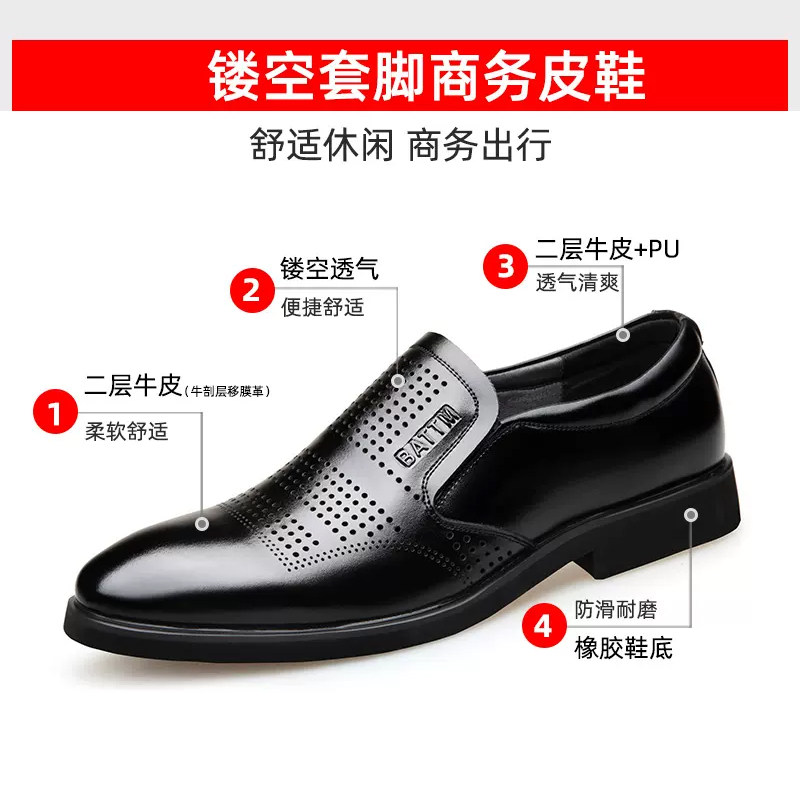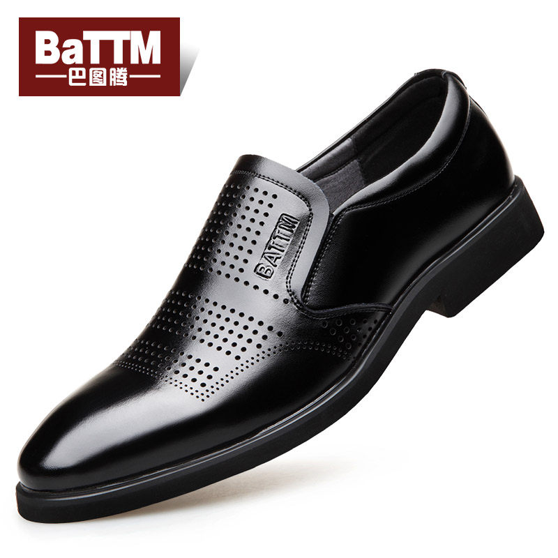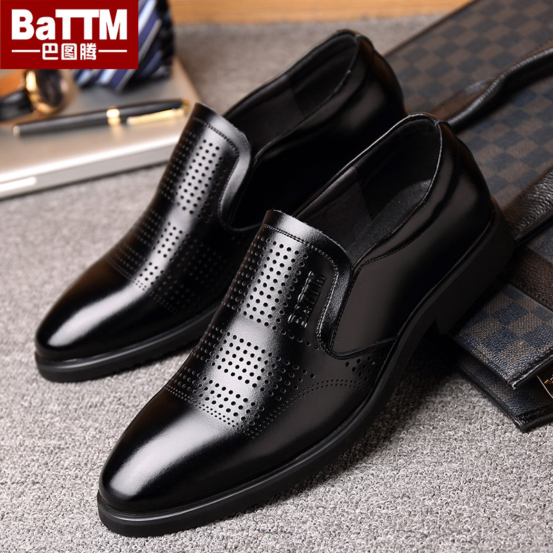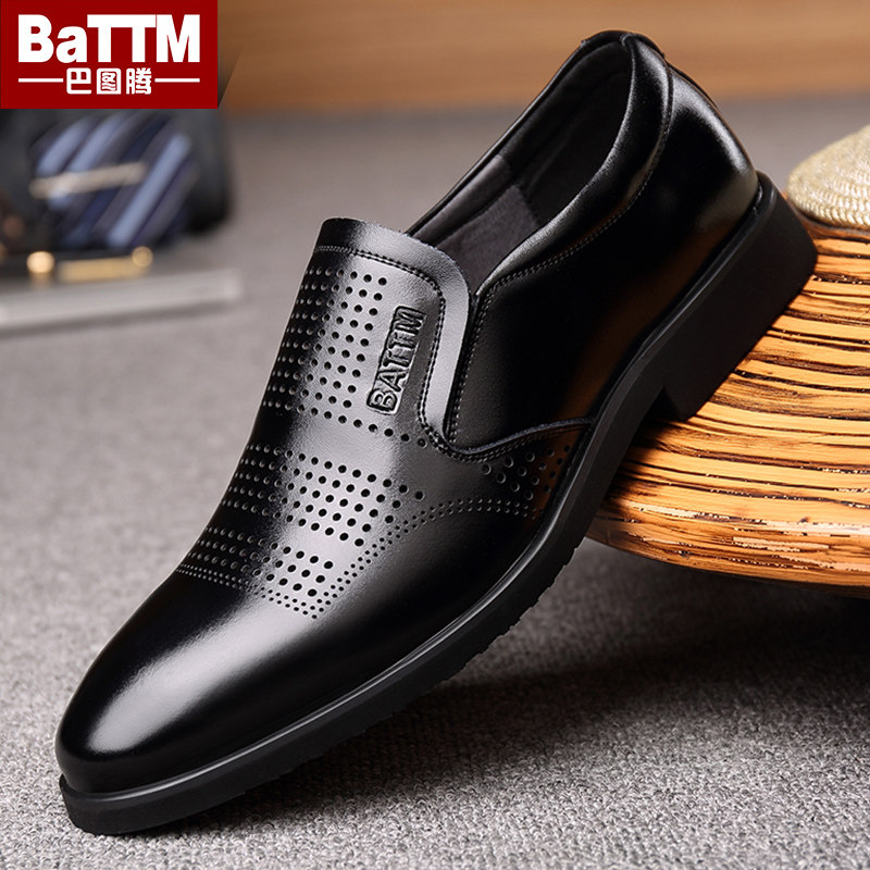 巴图腾夏季男士商务休闲皮鞋真皮透气正装镂空皮凉鞋爸爸鞋男鞋子