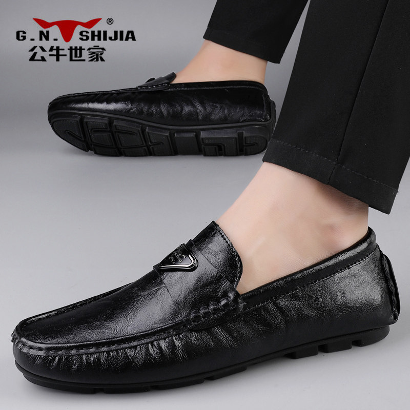 公牛世家皮鞋男鞋2025新款秋季透气一脚蹬乐福真皮休闲男士豆豆鞋