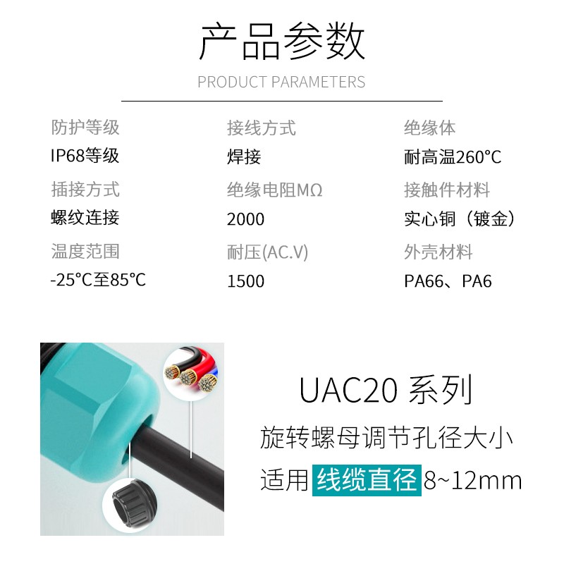 防水插头直径20mm公母对接航空接头连接器2/3/4/5/6/7/9/10芯IP68