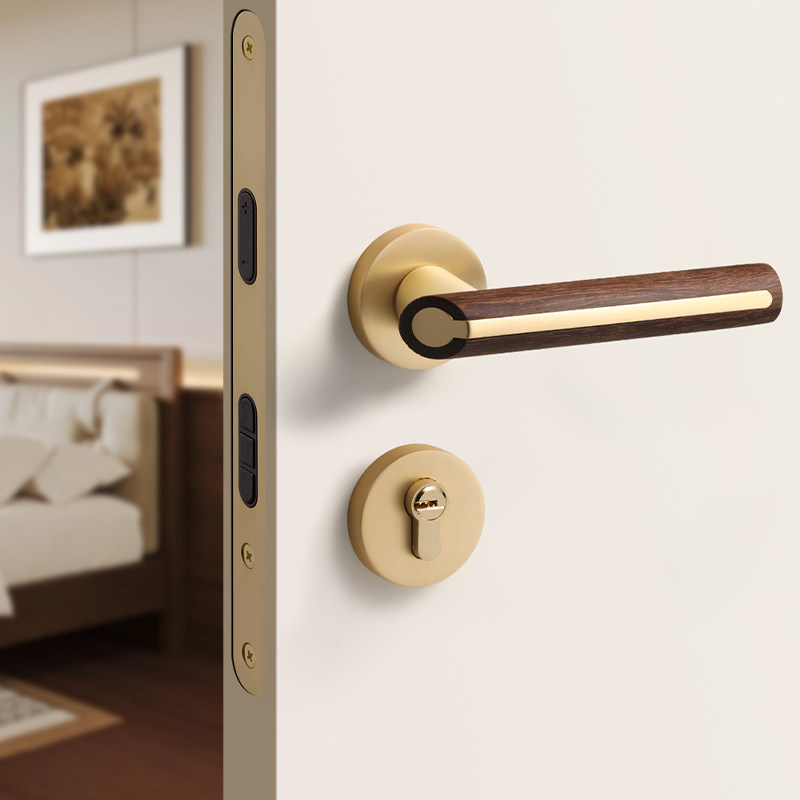 复古卧室门锁房间家用木门金色实木门把手室内磁吸静音中古房门锁