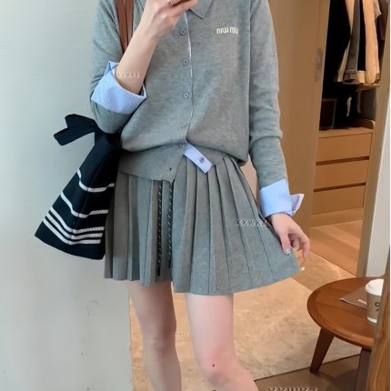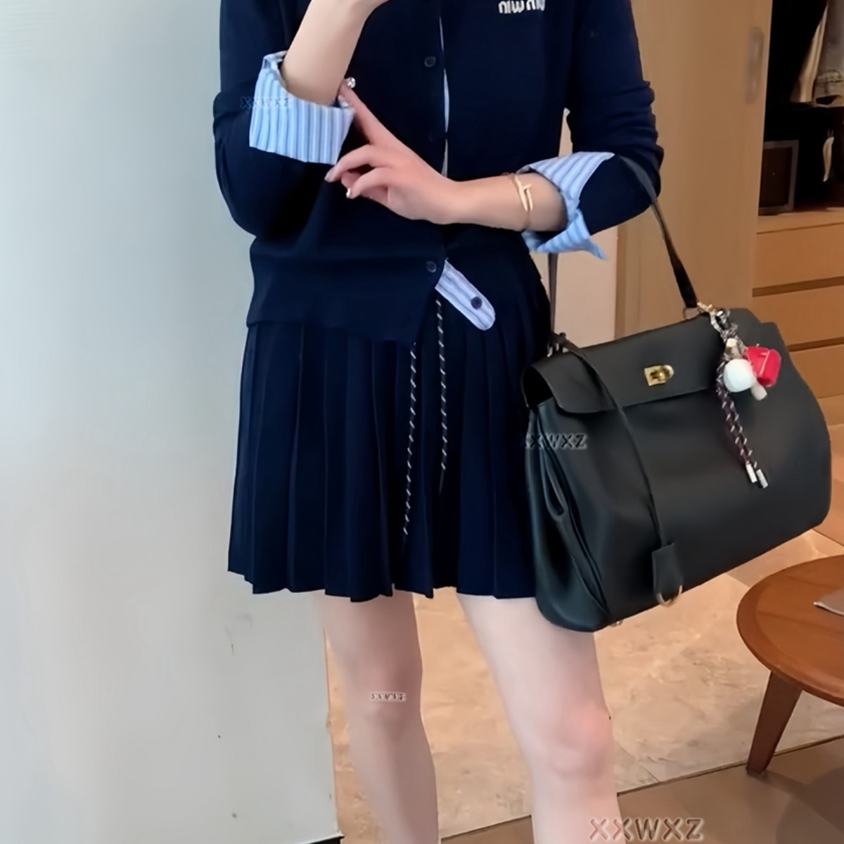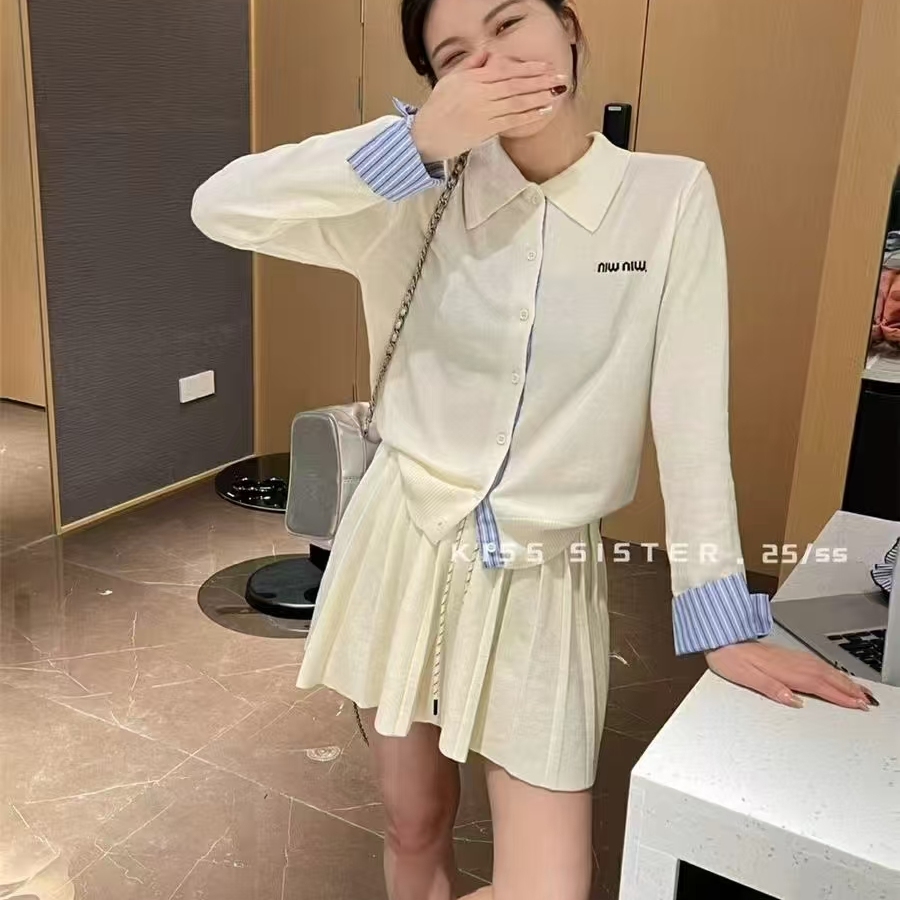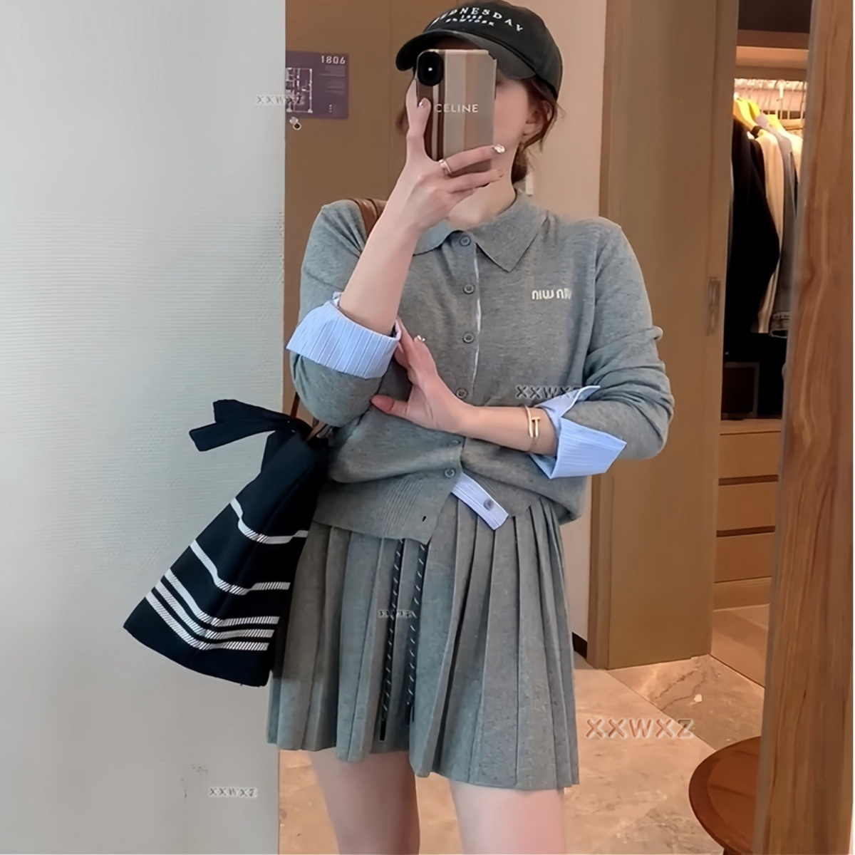 时尚针织套装 2025新款法式气质学院风减龄针织开衫+百褶半身裙