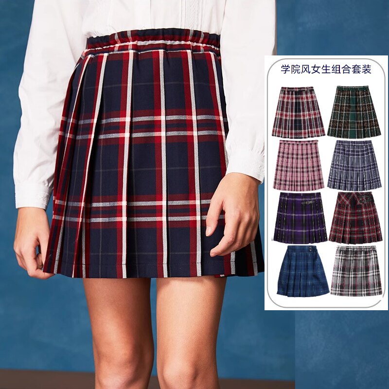 伊顿纪德校服中小学生女童短裙半身裙格子裙百褶裙学院风裙子惠