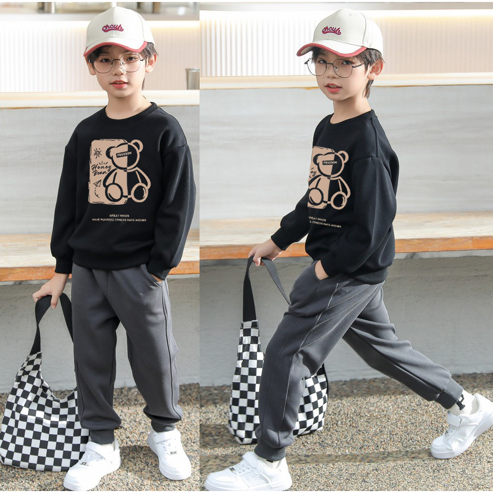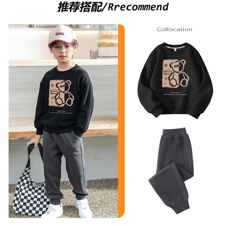 漫哈谷重磅升级双砂棉美式潮牌ins宽松版圆领儿童卫衣春秋款男女