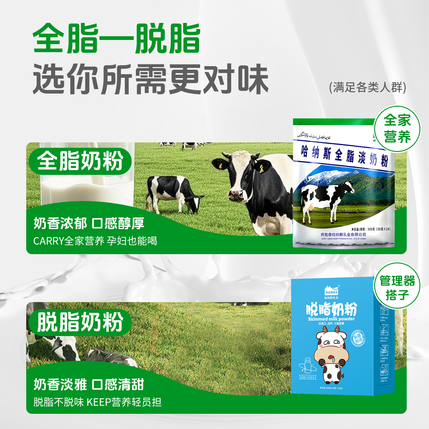 哈纳斯新疆奶粉纯牛奶粉全脂脱脂成人中老少年大学生正品官方早餐