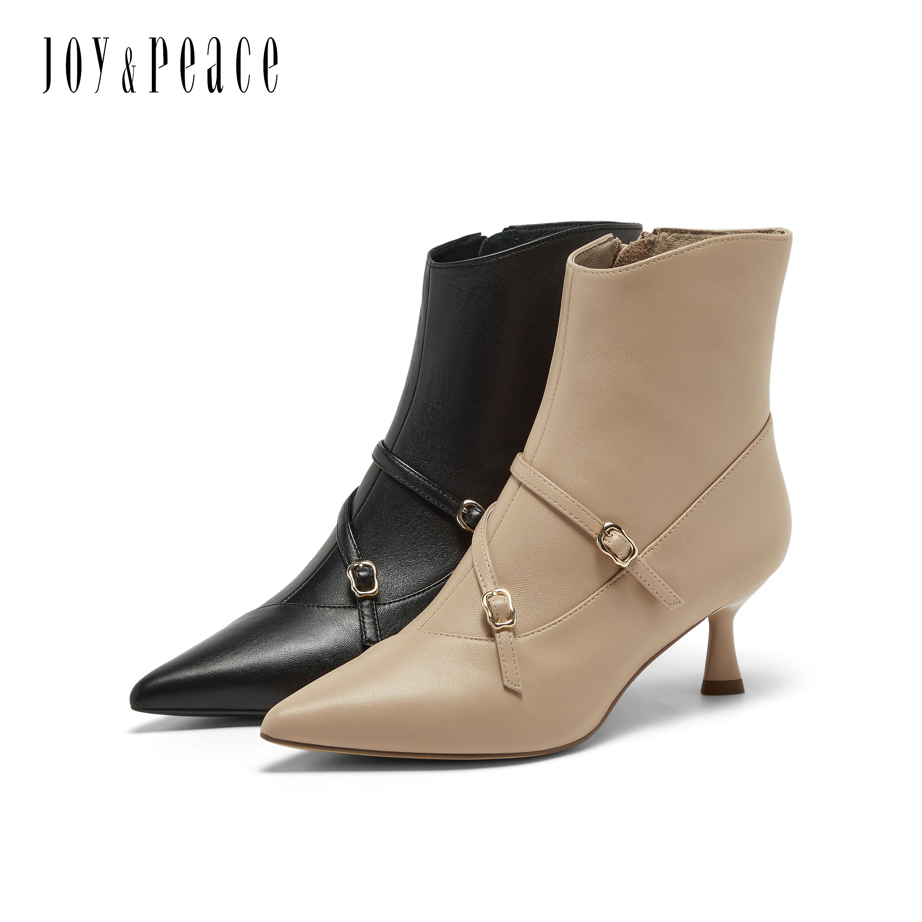 真美诗2025冬季新款羊皮优雅气质尖头细高跟时装靴短靴女YVA49DD5