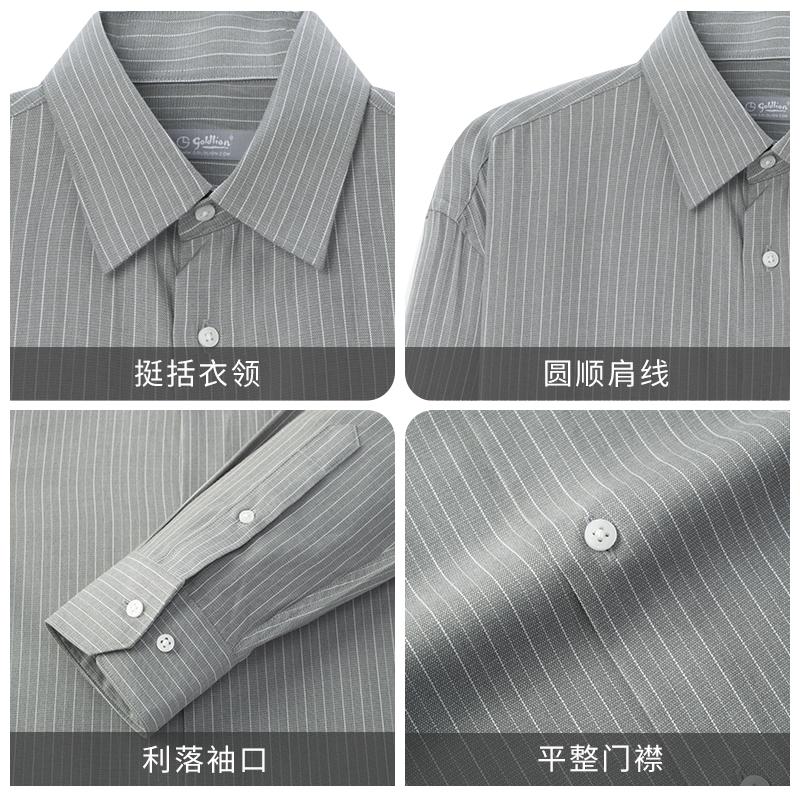 【易打理】金利来秋冬新款男士正装衬衫抗皱条纹长袖衬衣男