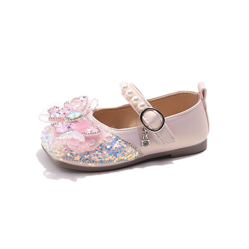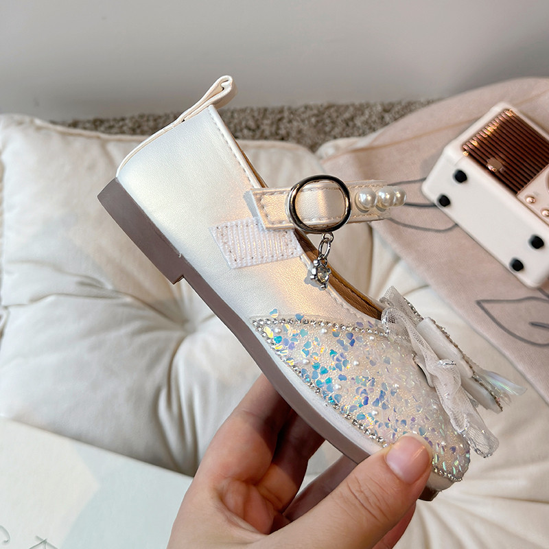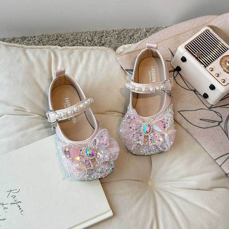 女童皮鞋2025秋季新款儿童公主鞋水晶鞋豆豆鞋宝宝鞋洋气女孩单鞋